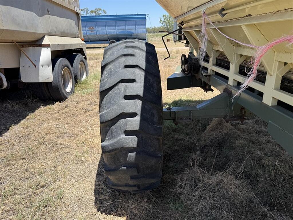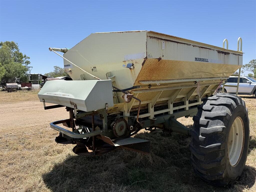 Marshall 880T Belt Spreader. 3m centers, roll over tarp. Located at Moree NSW, available at MRE Auctions online sale.