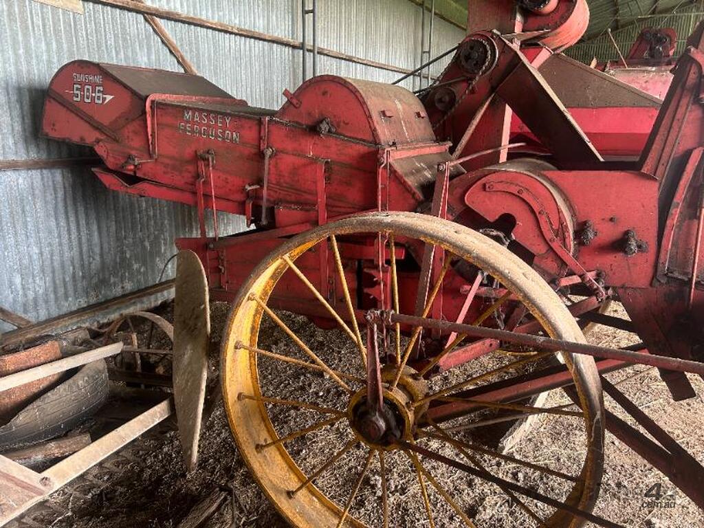 Massey Ferguson 506 PTO Trailing Header/Combine Harvester. Header is in extremely good condition for its age and is in good working condition. Has Sunwinch and comes with hydraulic lift attachment. Suit collector. Last used in 2021.