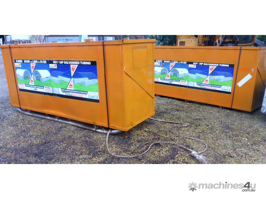 Model C4080, 40 x 80 feet, 15 feet high or 12m wide x 24m long x 4.5m high (plus the height of the containers), covers 3200 square feet or 297m2.