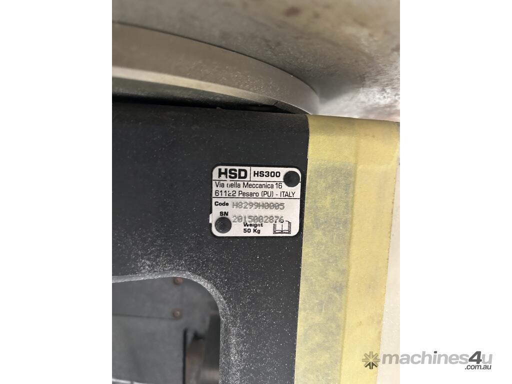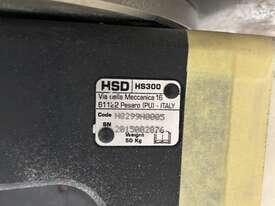 Italian HSD HS300 5-axis machining head with HSK F63 taper (see nameplate in photos) – compact rotary head ideal for 5-sided machining and deep cavities. HS300 heads provide approximately +100°/-40° A-axis tilt and ±220° C-axis rotation, giving excellent access for undercuts and complex geometry.
