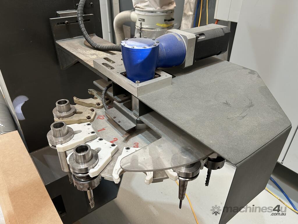 Automatic rotary toolchanger mounted on the gantry with HSK F63 toolholders – fast tool changes and reduced setup time.