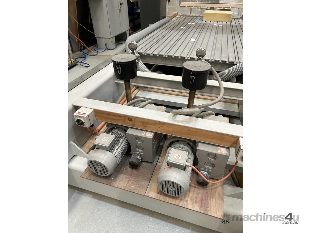 Twin vacuum pumps plumbed to the table for strong workholding on timber, plastics and foam sheet or blocks.