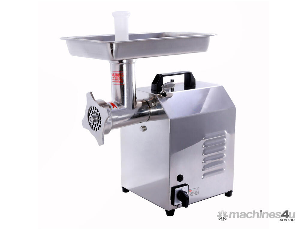 Matador Heavy Duty Meat Mincer TC12 The formidable meat mincer (TC12) can break up to (150kg/h) with a power of (550/10 W/A) and dimensions set at (420x265x548). Part of our robust food bench and prep range, this heavy-duty bench mincer can easily crush, cut down and mince frozen meat quantities into smaller, shaped pieces. These pieces are then cooked or served, depending on the specific dish. 150kg / hour Heavy Duty Meat Mincer with #12 head - TC12 Key Features All stainless steel chamber, designed to the latest US and EC safety standards. Single handle locking mechanism releases chamber for easy cleaning. Durable and heat free operation Reversing function Sausage filling attachment 6mm & 8mm mesh plates and single knife NOTE Mincer height is measured to the top of the plunger 1 Year Return to Base Warranty Depth: 265 mm | Width: 420 mm | Height: 548 mm | Power: 240V; 735W/10A | Net Weight: 21 | Price: $1050 | Manufacturer: Matador | Warranty: 1 Year Return to Base