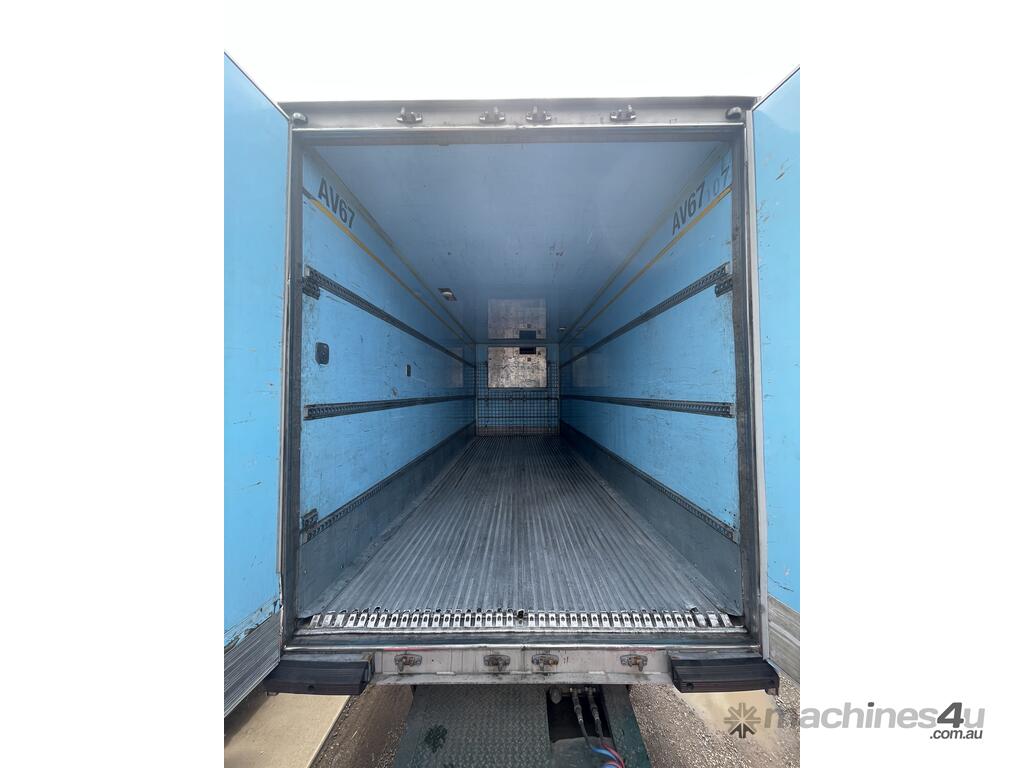 Built for reliable cold chain logistics, this 2007 Maxitrans refrigerated A trailer offers a robust tri-axle configuration, rollback setup, and practical features for transport operations. Recently serviced and fitted with airbag suspension, Right Weigh scales, and an airflow floor system for optimal cooling efficiency.