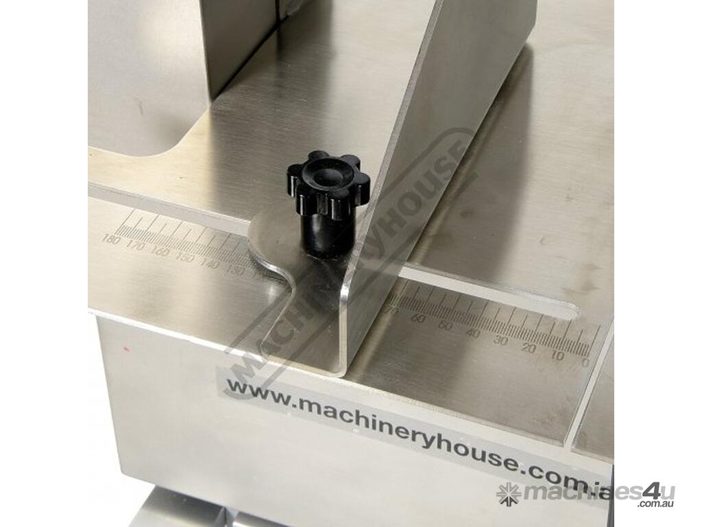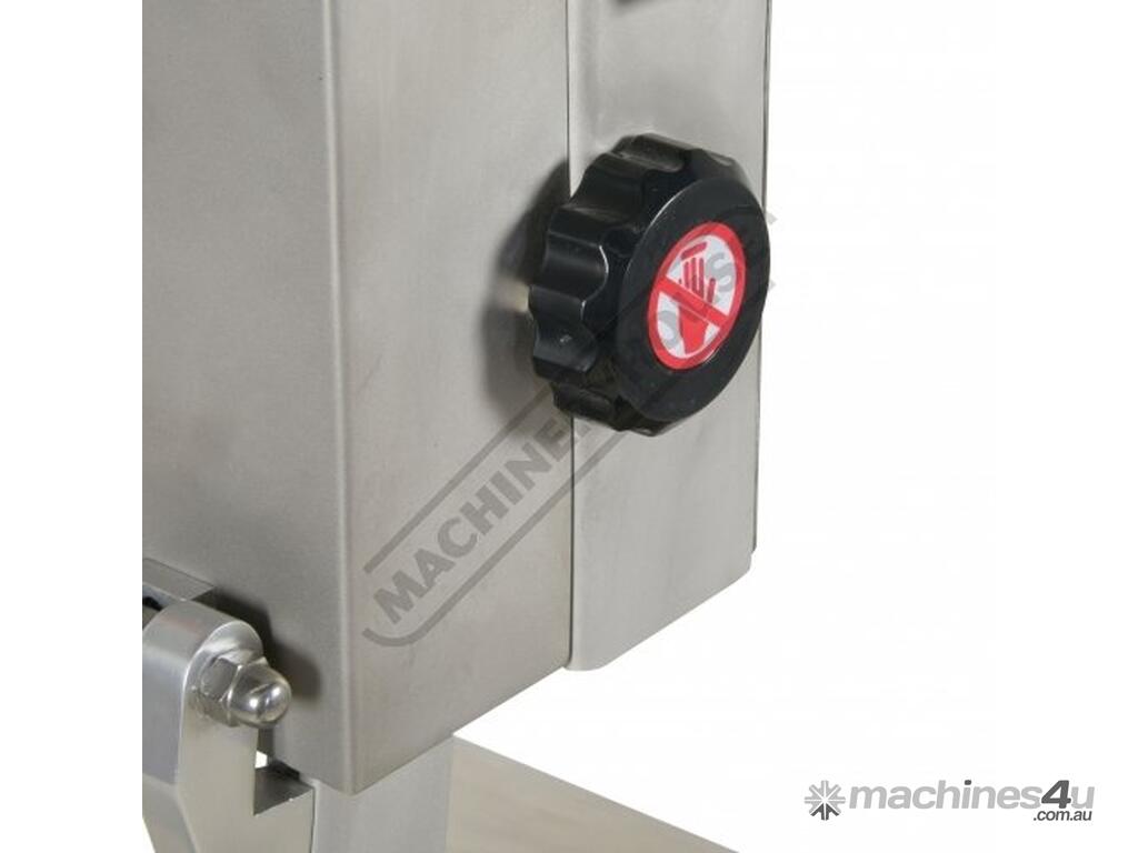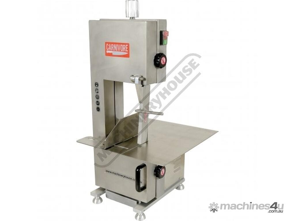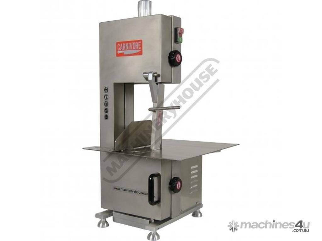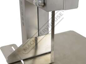 CARNIVORE Meat & Bone Bench Band Saw - Stainless Steel MB-210 Slide Out Bottom Tray To Catch Blade Off Cut Meat Shavings 185 x 240mm Capacity