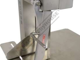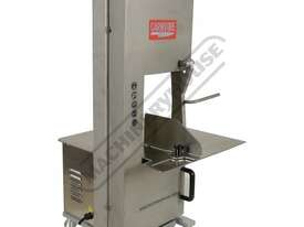 This powerful, heavy duty meat band saw slices through meat and bone like a knife through butter. Even the toughest cuts of meat and the hard bones are no match for this machine when using our top-quality band saw blades.