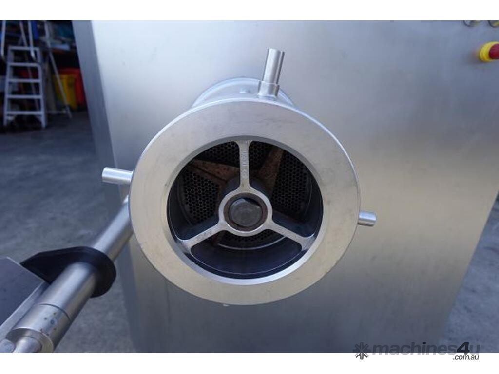 Unit is a stainless steel food grade mixer/grinder for meat products.