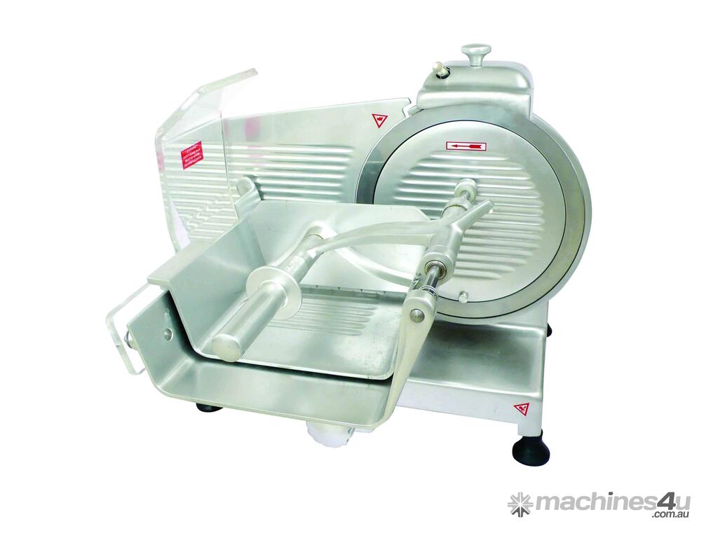 Meat slicer for non-frozen meat - HBS-300C Ideal for Butchers and Delis to slice fresh meats and small goods - 30.S/S Blade Aluminum - magnesium cast alloy casting Polished and anodized surface Sleek design, no sharp edges, and corners, easy to clean Assembly and disassembly blade cover with security protection Metal on and off switch Assembly and disassembly carrier with security protection The machine complying with CE standard Forged Stainless steel blades Gear drive 0.2-15 mm adjustable thickness Sharpener 2 Year Parts and Labour Warranty Depth: 686 mm | Width: 748 mm | Height: 678 mm | Power: 230V; 250W; 10A outlet required | Net Weight: 34.8 | Price: $2099 | Manufacturer: Yasaki | Warranty: 2 Years Parts and Labour