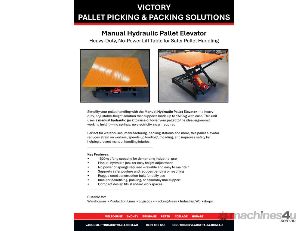 Contact us today to learn how the **Manual Hydraulic Pallet Elevator** can improve safety and efficiency in your operation. We offer expert advice, competitive pricing, and fast Australia-wide delivery.