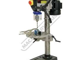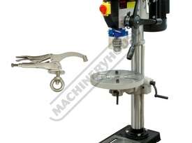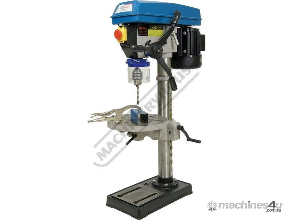 Mostly constructed from cast iron and machined steel to provide superior stability and strength. Powered by a 0.75kW, 1hp, 240-volt induction motor and coupled to a 12-belt speed pulley system offering wide range of speeds between 280-2380rpm. The down feed handle is also made from cast iron in one solid piece design and fitted with soft hand grips for your comfort & convenient drilling depth feed control.