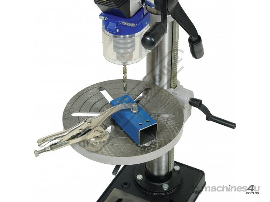 The drill quill is equipped with a 2 morse taper spindle allowing you to fit 2MT drill bits to the spindle or 1MT drill bits with an optional adaptor. A quality Ø3-Ø16mm keyed drill chuck with 2MT arbor is included & fitted. The drill table can tilt left or right, rotate 360 degrees and the height is also easily adjusted up or down via rack & pinion hand lever & can be locked into position. Furthermore, the whole table assembly can be swivelled away to allow the machined base to be used as a work support.