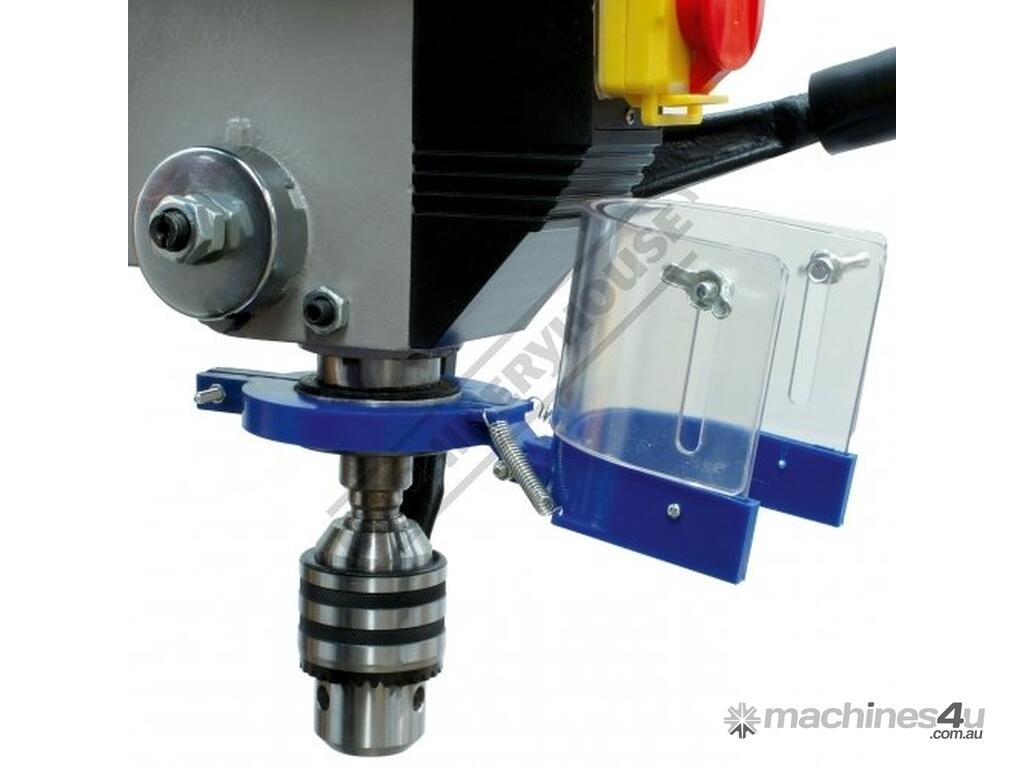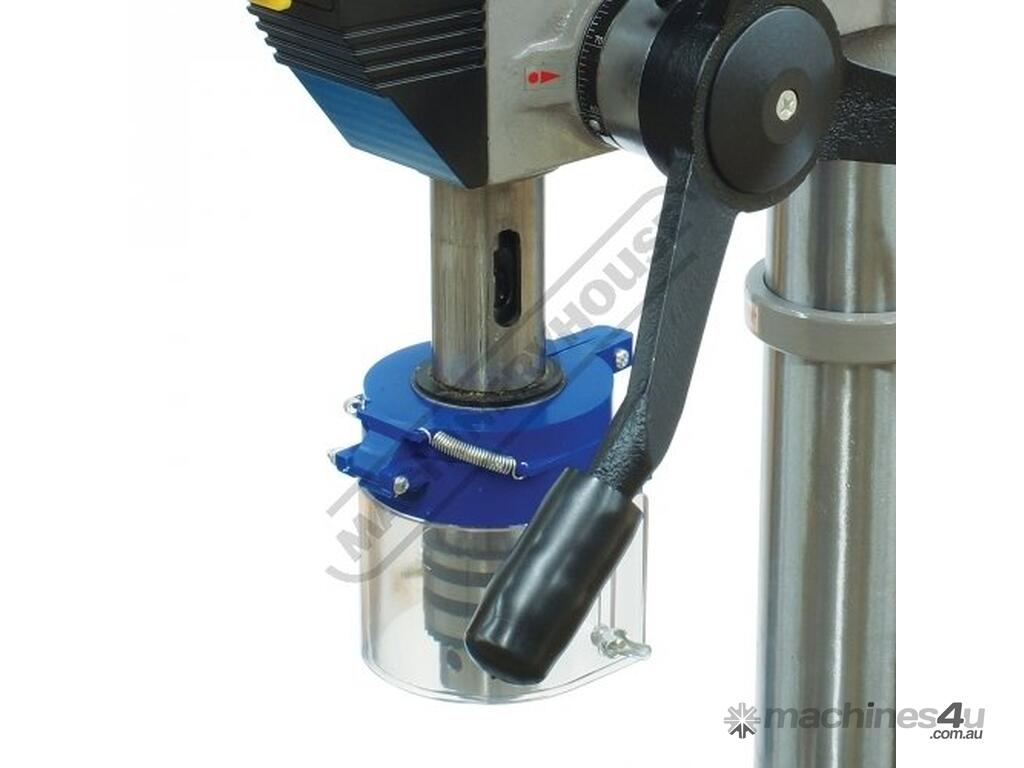 The magnetic safety switch with emergency stop is conveniently front mounted for quick access. The drill also includes an adjustable safety drill chuck guard and the belt cover is equipped with a safety switch to ensure safe belt speed changing.
