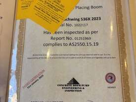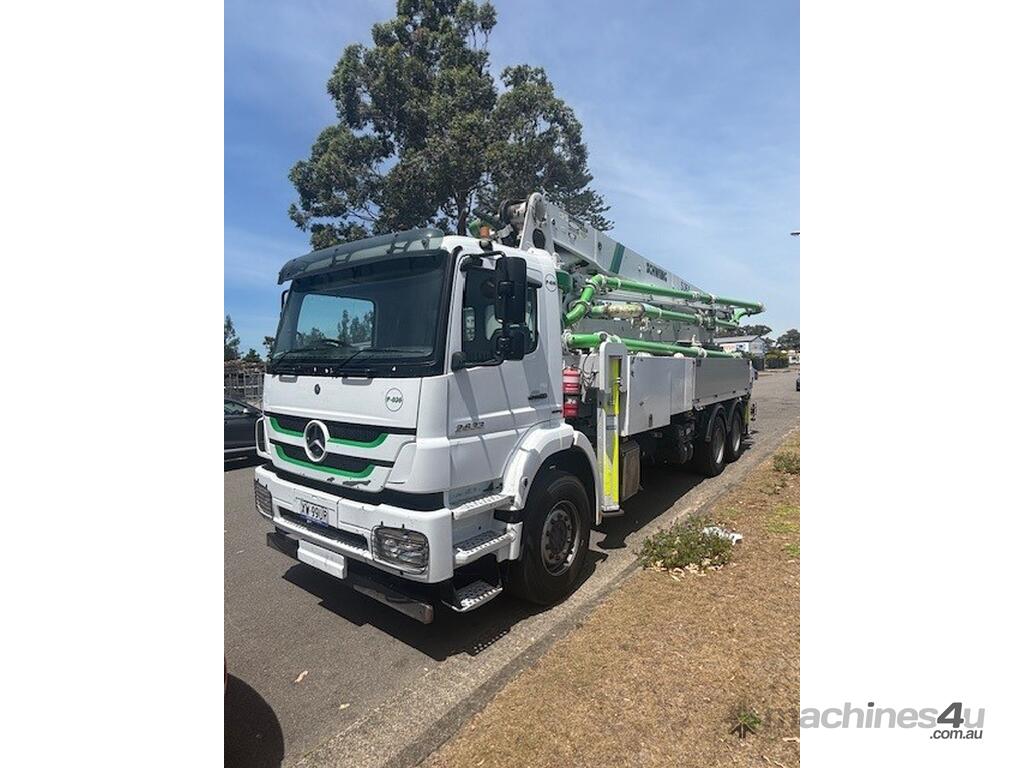 2017 Mercedes and Schwing 36X truck mounted boom pump.