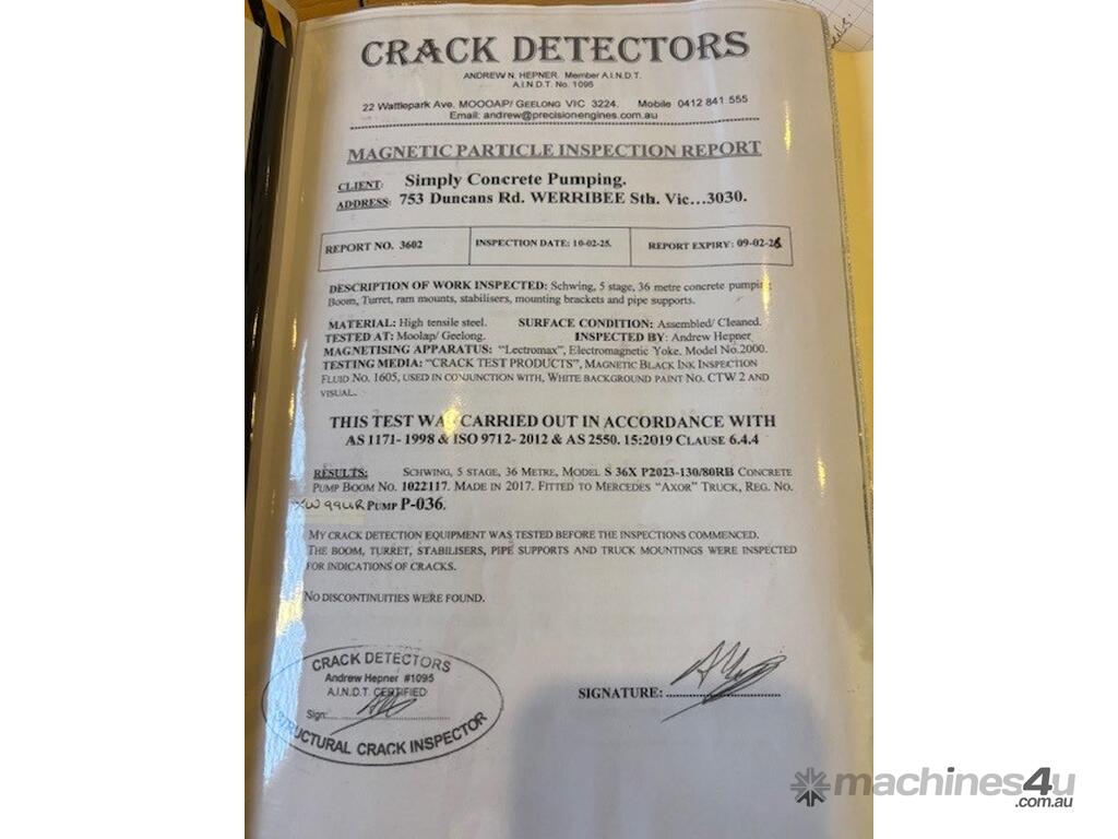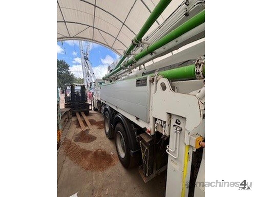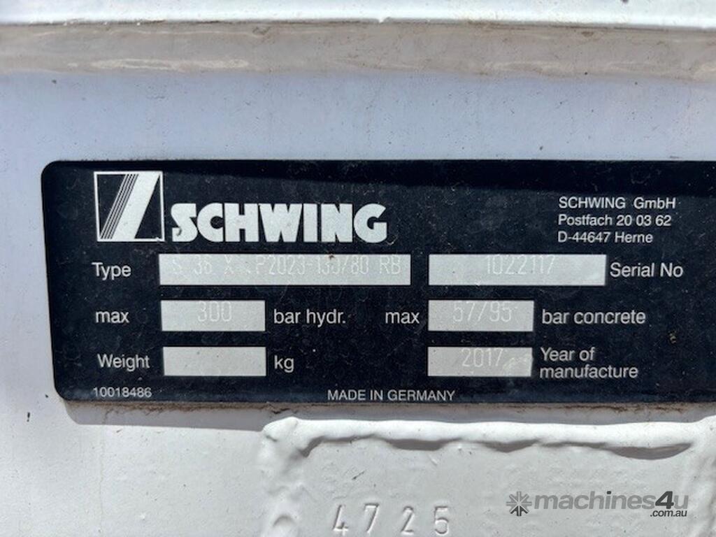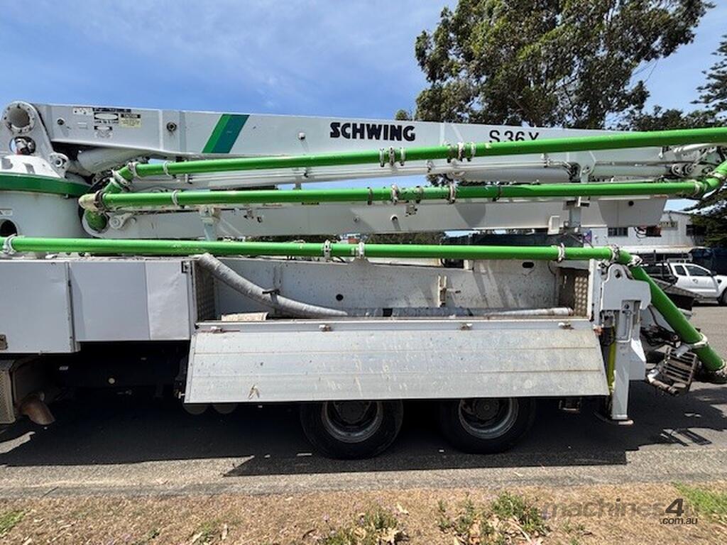 Immaculate ready to work Schwing 36X with new hoses full reg NHR ideal starter rig, comes with training if sold within Australia, great all-round condition in stock and available now. Schwing, the best in pumps available, all history, log books pipe thicknesses etc,etc, everything about this truck and pump is right. Remote control, pressure washer, clean hopper maintained regardless of cost, semi-auto gearbox for the truck.