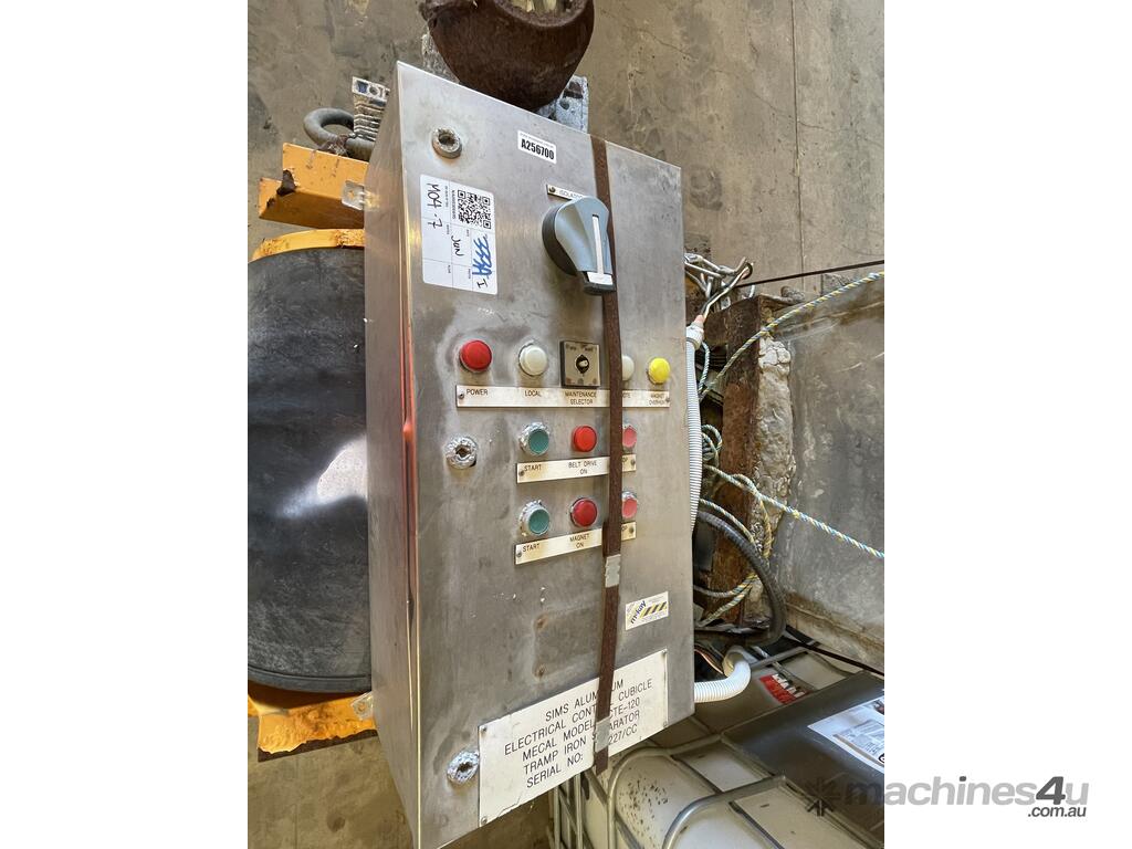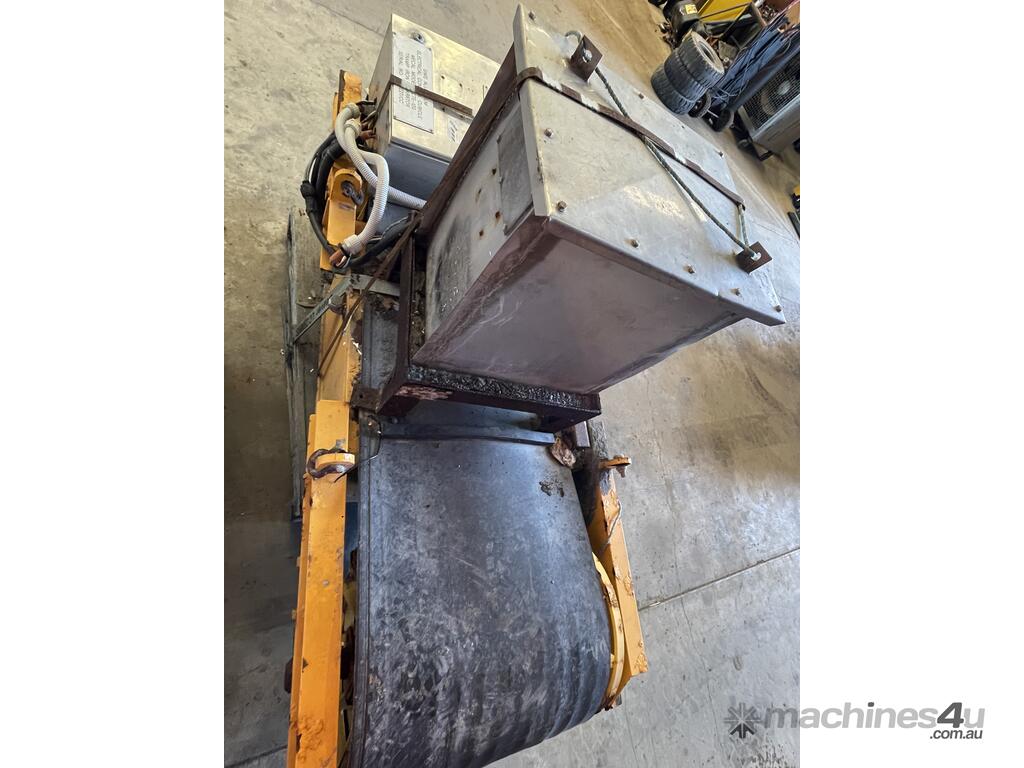 This heavy-duty Mercel magnetic belt separator is designed to continuously remove tramp iron and ferrous contaminants from conveyed materials. It was recently removed from service and will undergo a **cleaning and serviceability appraisal prior to sale** to ensure functional condition.