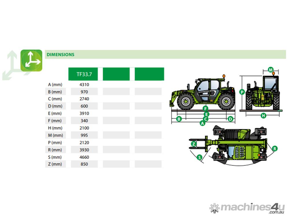 Small design with big performance, the Merlo TF33.7 delivers on all levels. The TF33.7 has a Deutz 4 cylinder, 115hp Engine that helps deliver better acceleration and higher max speed than the competition, reaching max speeds of 40km. Simple, uninhibited access to the engine means quick and seamless servicing meaning less downtime. With the combination of Merlo’s Hydrostatic transmission and air suspension seat, there’s no doubt you will have a smooth ride. Sitting at just 2m in height, the Merlo will also provide a 3tn Maximum load capacity and 7m lift height.