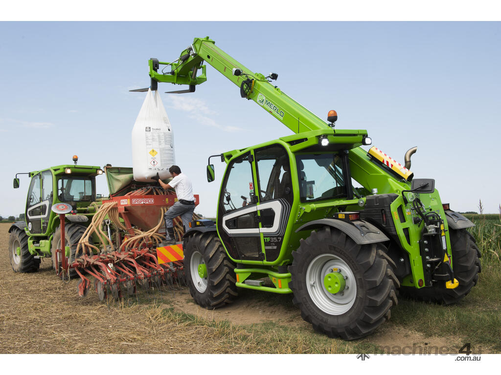 The Merlo TurboFarmer 35.7 is a powerhouse of innovation and efficiency, designed to meet the demanding needs of modern agriculture and construction. With a lifting capacity of 3.5 tons and a reach of up to 6.5 meters, this versatile telehandler excels in handling heavy loads with precision. Equipped with advanced hydraulics, intuitive controls, and a spacious, ergonomic cab, the TurboFarmer 35.7 ensures maximum operator comfort and productivity. Its robust construction and reliable performance make it an invaluable asset for tasks ranging from material handling and loading to lifting and transporting. Experience the perfect blend of power, versatility, and reliability with the Merlo TurboFarmer 35.7.