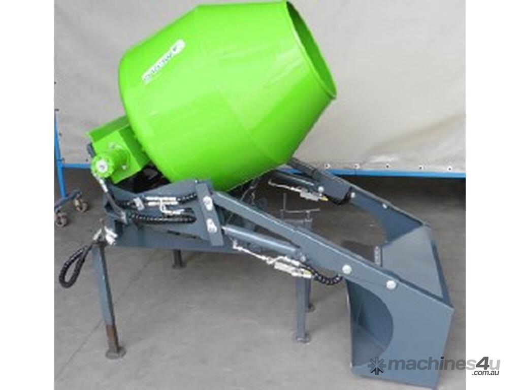 Concrete mixer with self-loading bucket