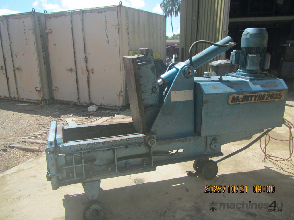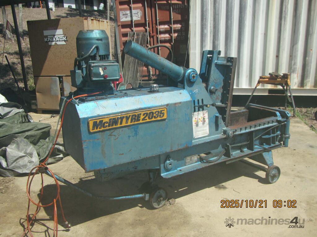 Metal Baler, McIntyre model 2035 non-ferrous metal baler, electric hydraulic powered, 10HP/7.5 KW 3/1 phase electric motor, unit is mounted on wheels, unit weight 1860 kg, produces a 355mm x 200mm bale, manual control, located Mackay Qld., in good condition. (has been running on 240 Volt)