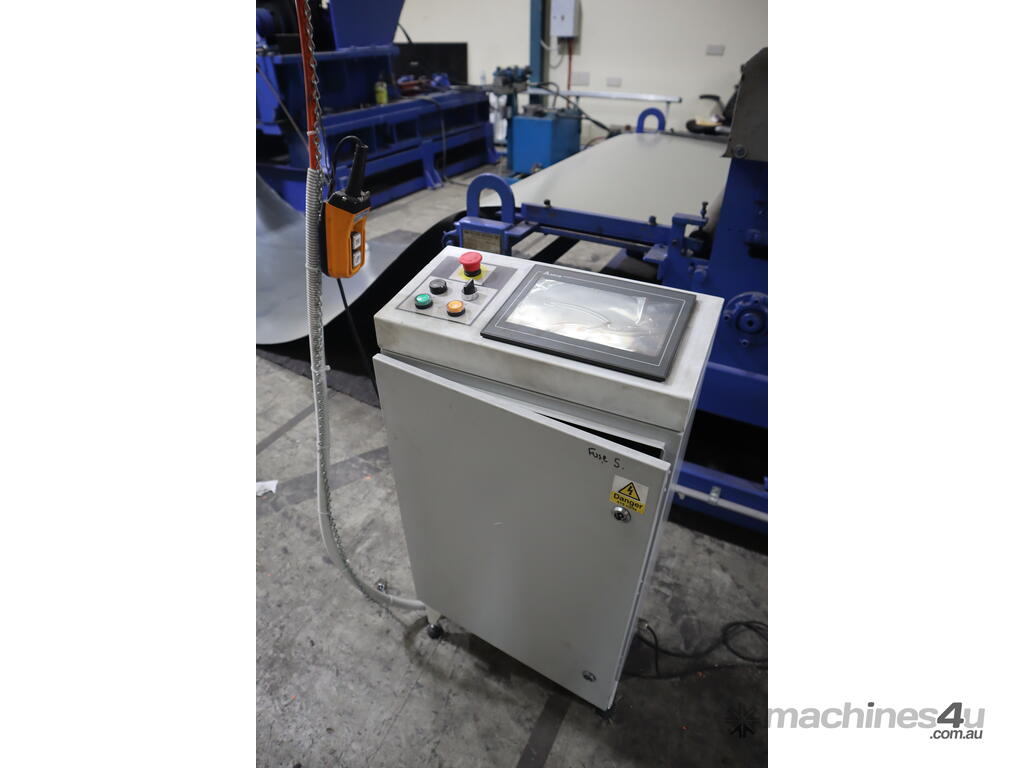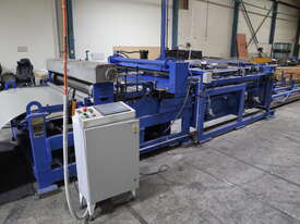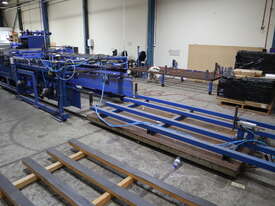 It has a newly built control cabinet which controls the whole line via PLC. It can be programed to cut multiple quantities of ten different sized lengths in one run.