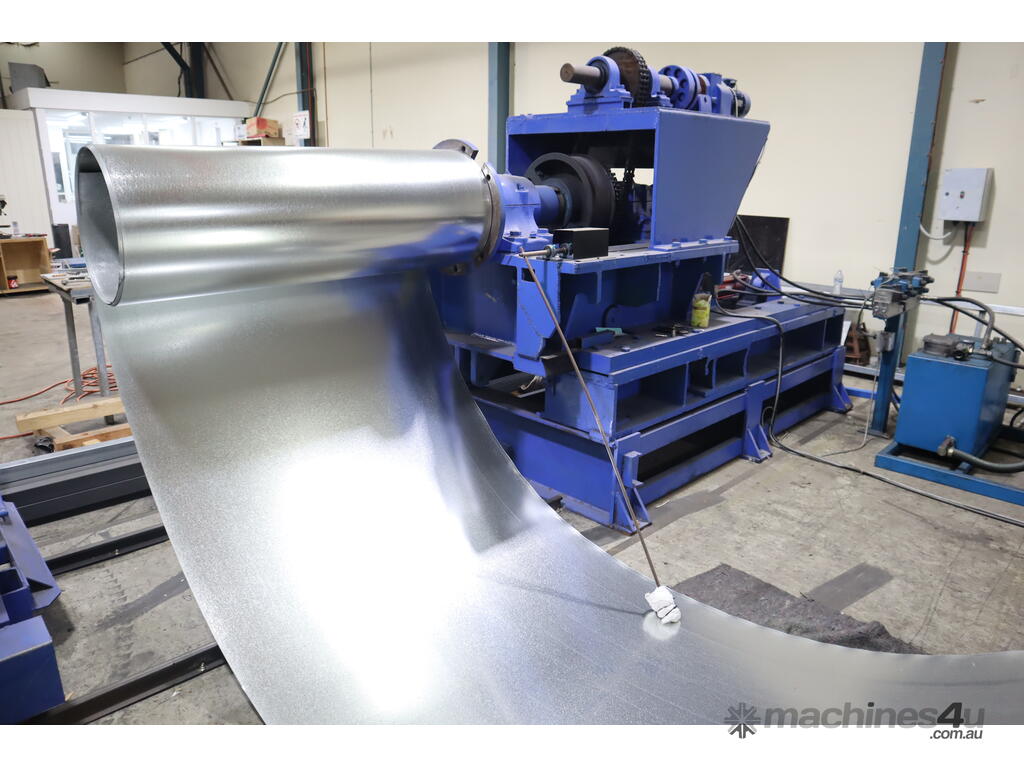 This sheet slitting line came out of a sheet cut-to-size business that was loading 7 ton coils and making sheets to sell to the trades.