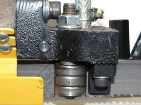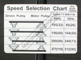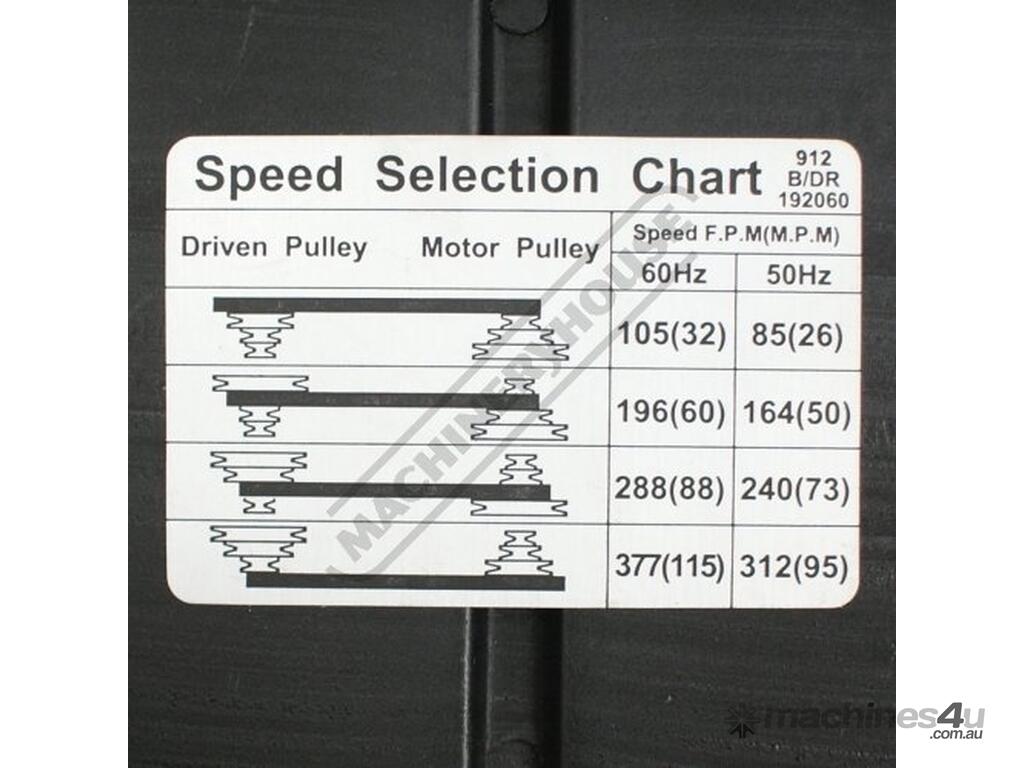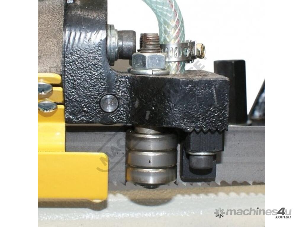 The BS-912 is a larger 240 volt band saw suitable for the medium fabrication and general engineering workshops. It features increased motor power, four blade speeds, double row ball bearing blade guides, a built-in coolant system and greatly increased cutting capacity.