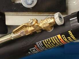 The downward cutting pressure is controlled by a fully adjustable hydraulic damper with an on/off valve and there is an automatic cut-off at the end of the cut. The vice rotates for mitre cutting and there is an adjustable material stop for consistent repeat length cutting.