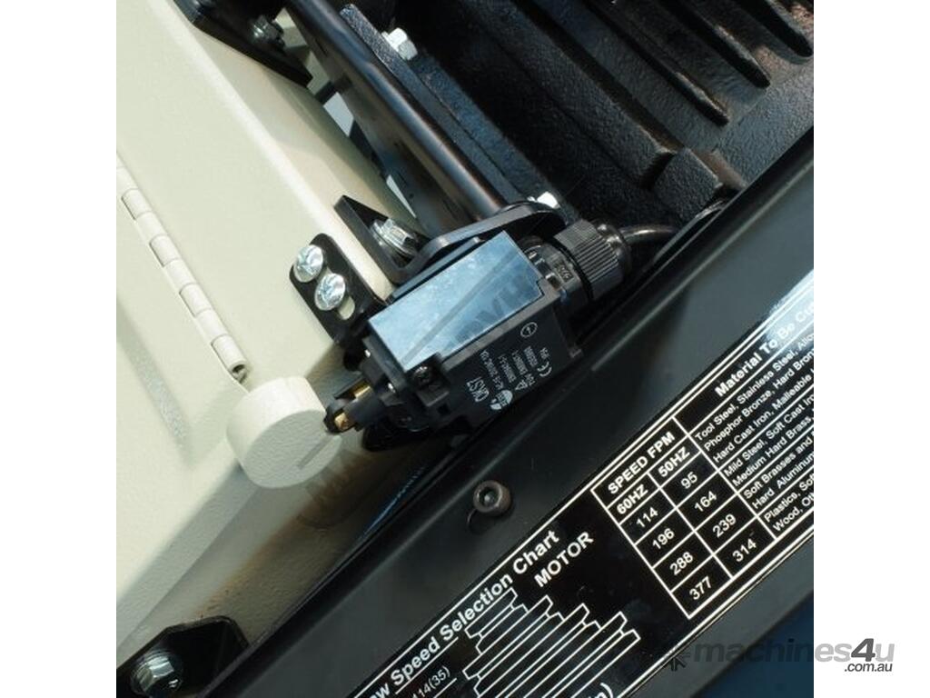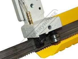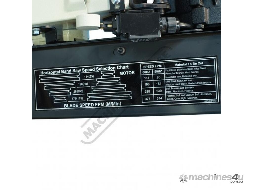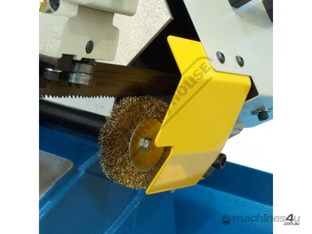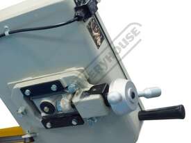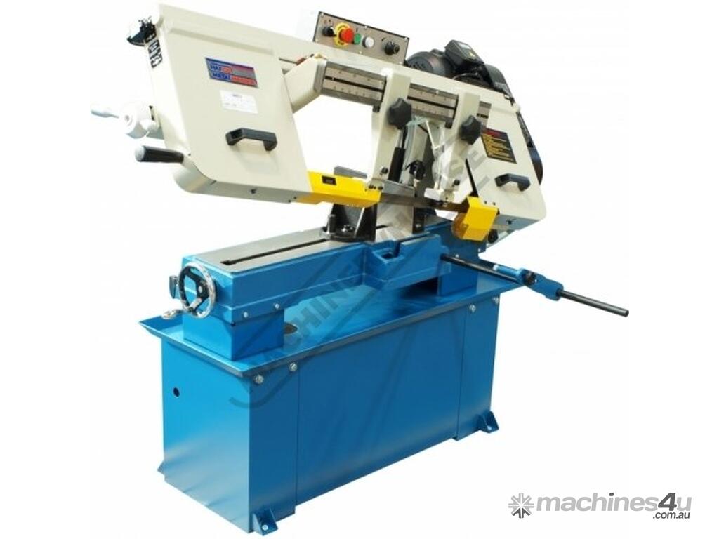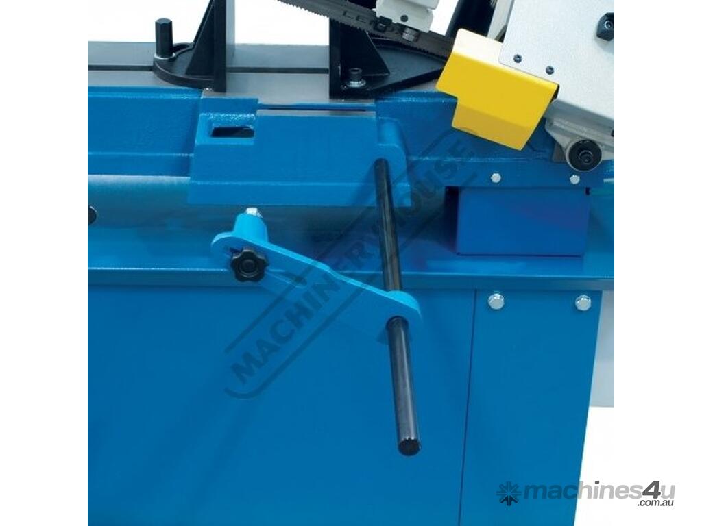 The BS-916A is a largest 240 volt band saw suitable for the medium/heavy fabrication and general engineering workshops. It features increased motor power, four blade speeds, double row ball bearing blade guides, a built-in coolant system, quick action sliding vice and greatly increased cutting capacity
