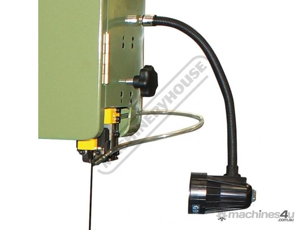 This all-in-one bandsaw package is equipped with a built-in blade shear, welding station, grinder, swarf air blower, and work light. The blade welding station allows you to weld your own blades, saving valuable time and money. Additionally, it enables you to perform inside cuts by welding the blade inside the workpiece and then mounting it onto the machine.