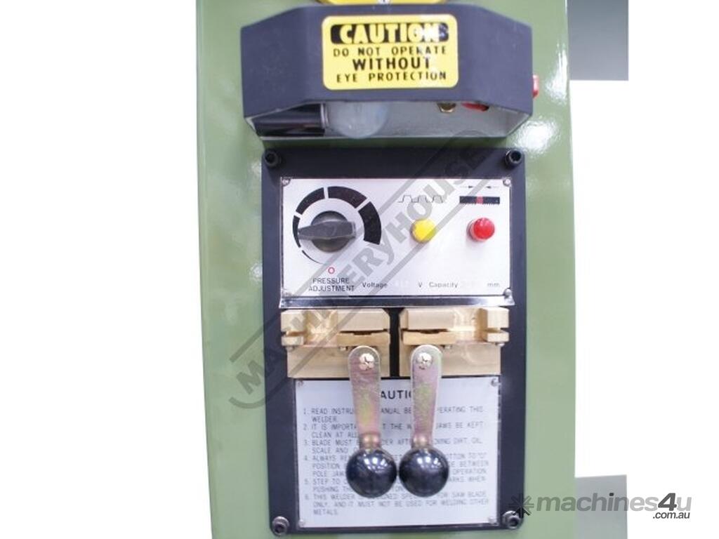 Blade welding unit with annealing device blade shear & grinder fitted to front of machine for convenient blade welding