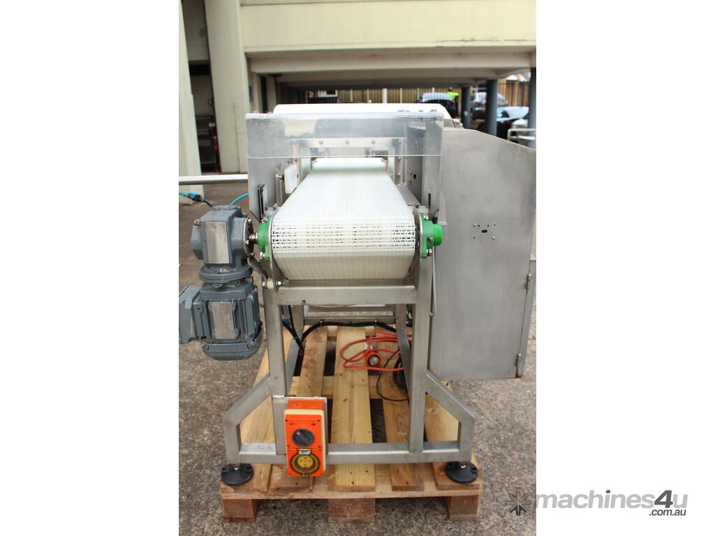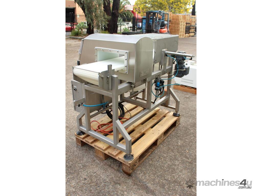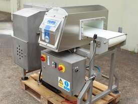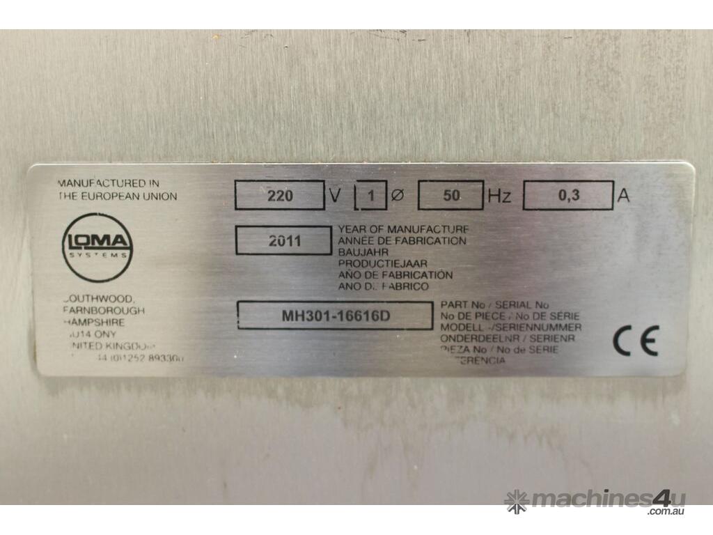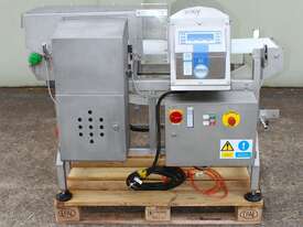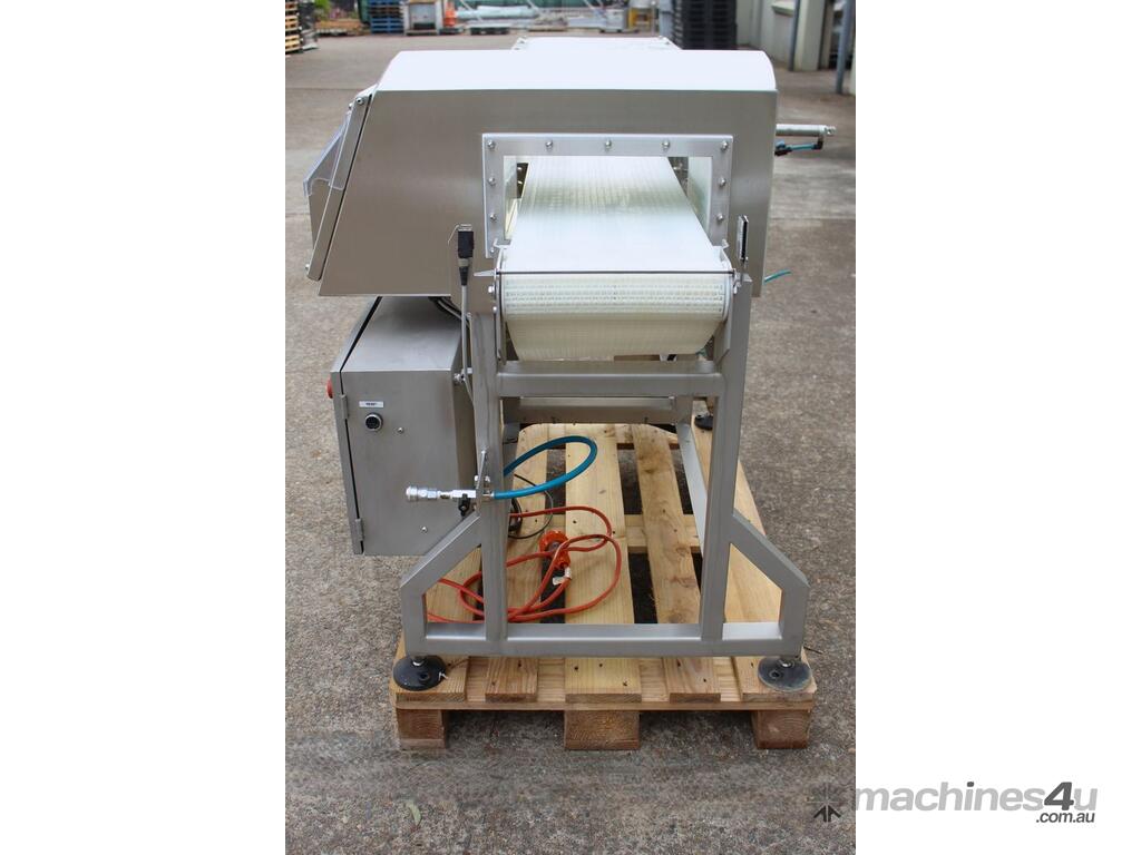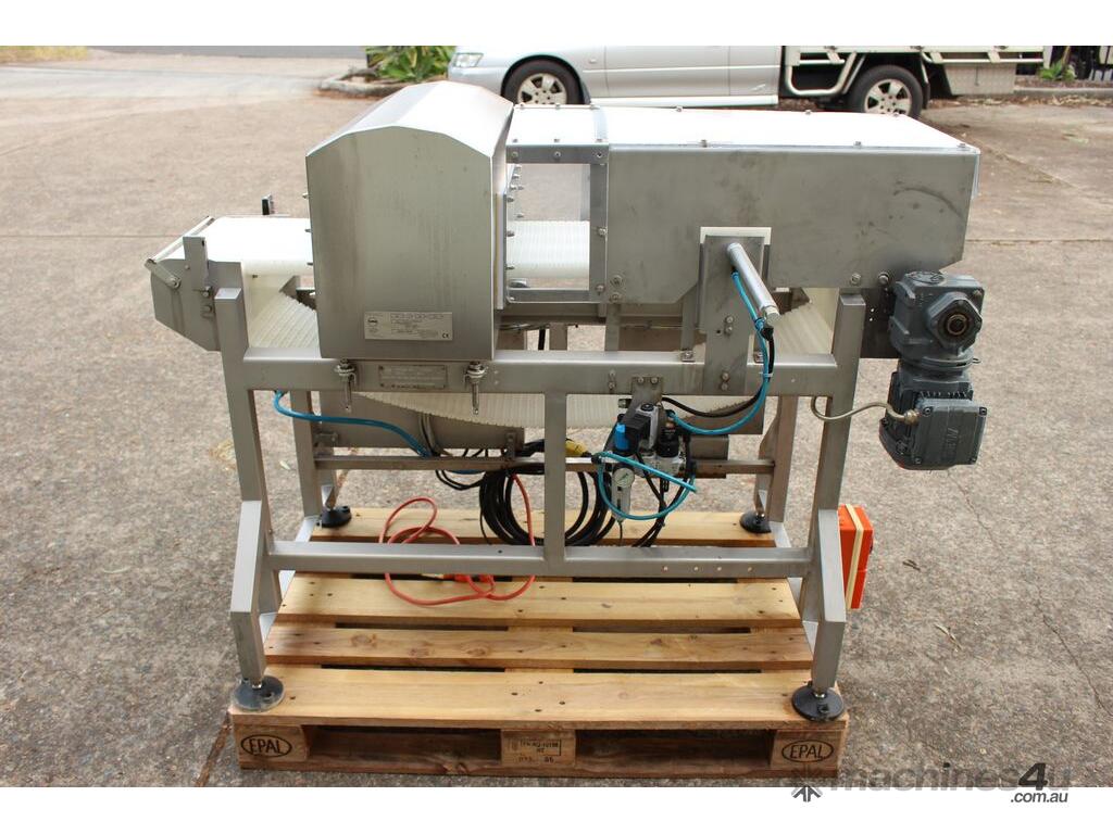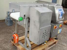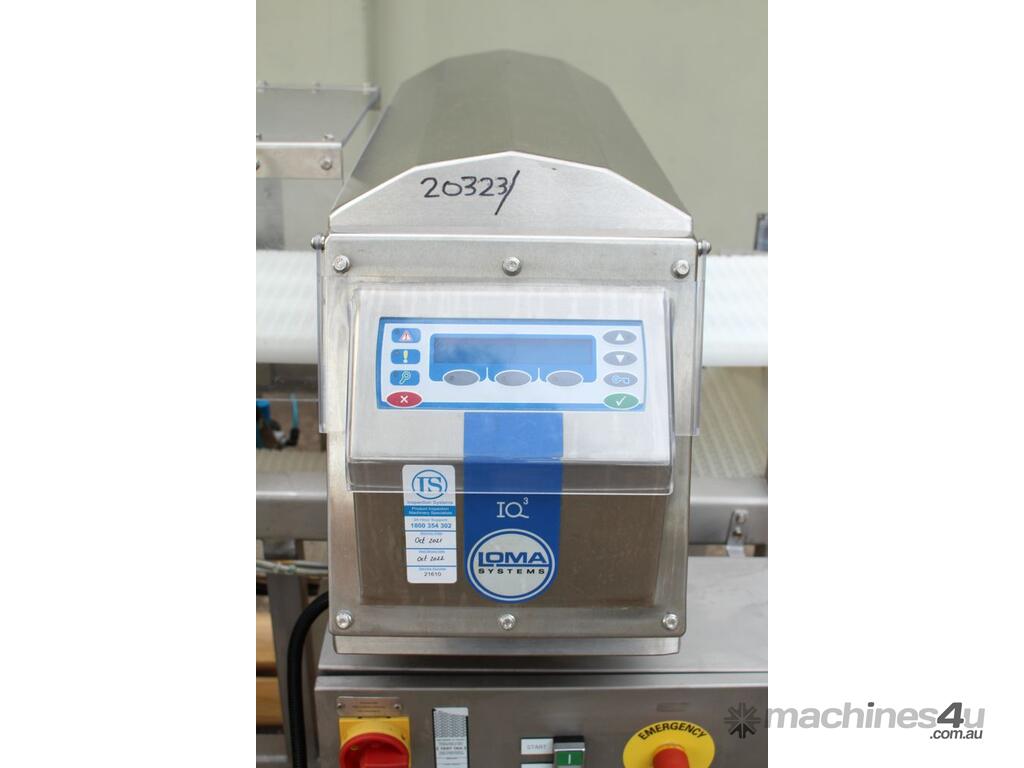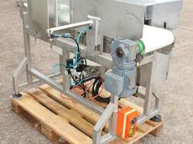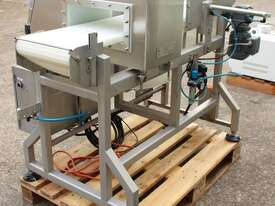 Metal Detector with Rejector, "Loma" Model IQ3 MH301, complete with belt conveyor size 300mm wide x 1400mm long, max chamber size: 330mm wide x 100mm high, 3 phase connection, along with pneumatically control rejector arm & cabinet, full stainless steel structure