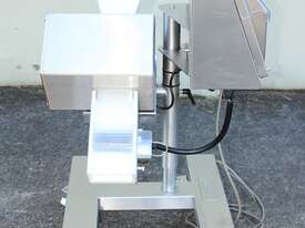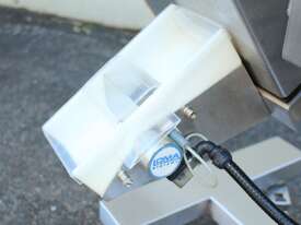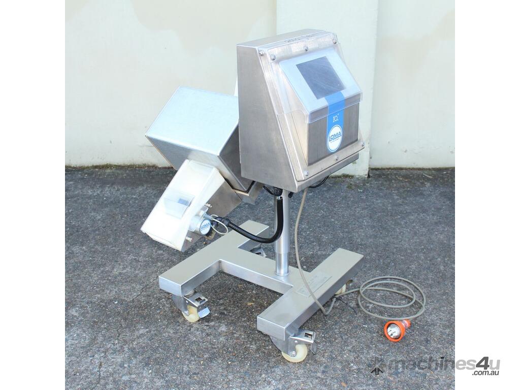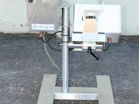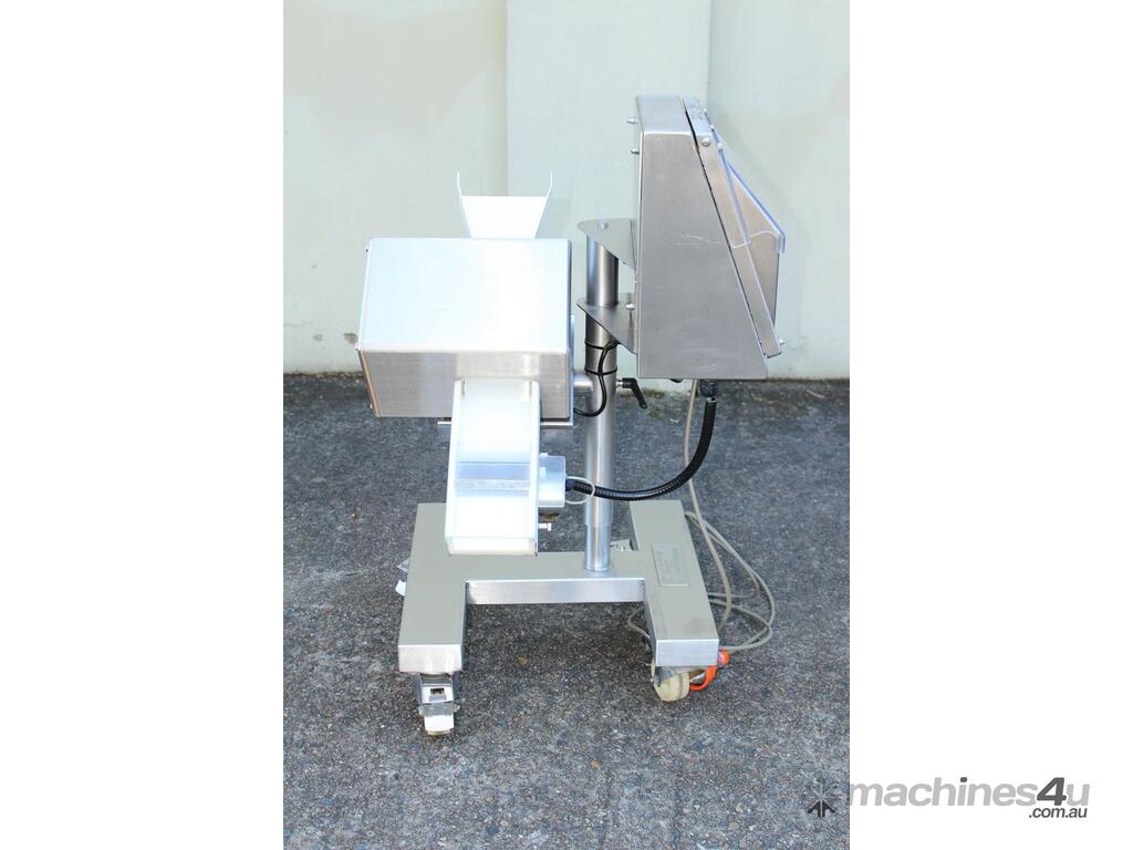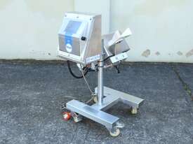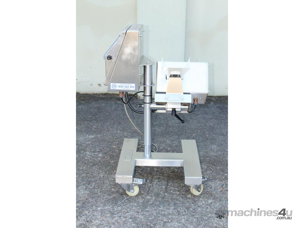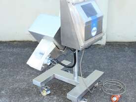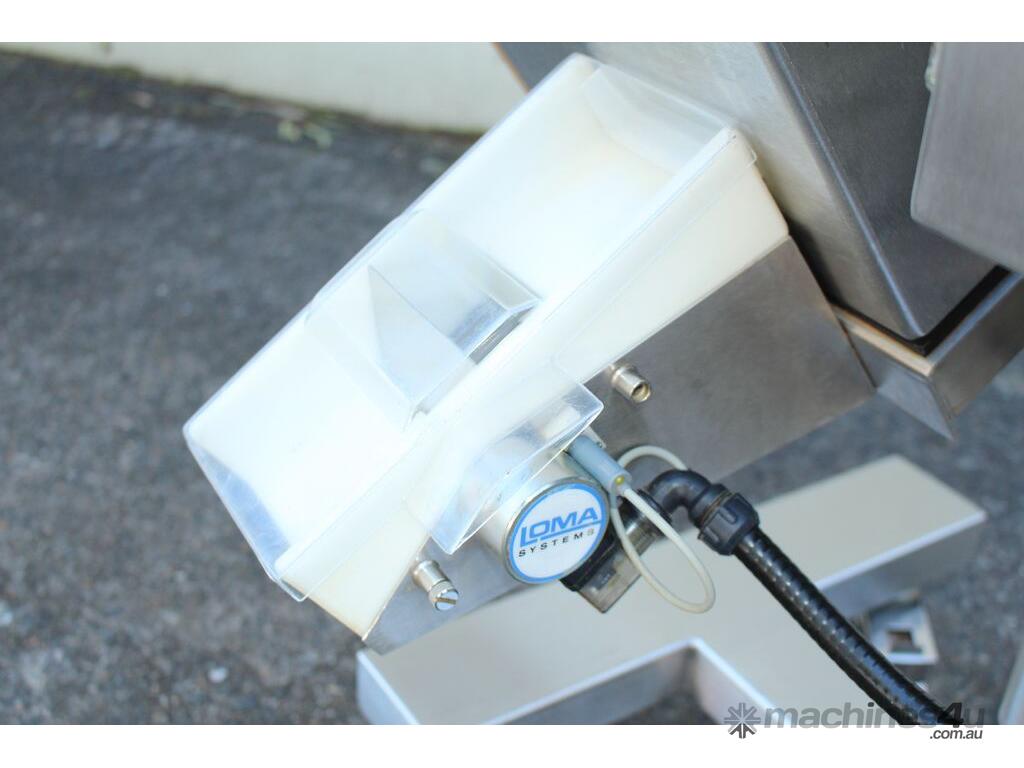 Stainless Steel Metal Detector, "Loma" model IQ CPH47161, aperture opening: 35mm (H) x 100mm (W), fitted with rejection system, all stainless steel construction on a mobile frame, designed for detection of ferrous, non-ferrous and stainless contaminants, compact robust build with hygienic easy-clean design, suitable for integration into conveyor lines in food, pharmaceutical or packaging applications, complete with user-friendly operator interface, 240V single phase power supply
