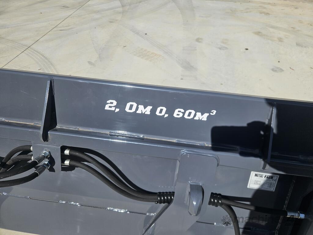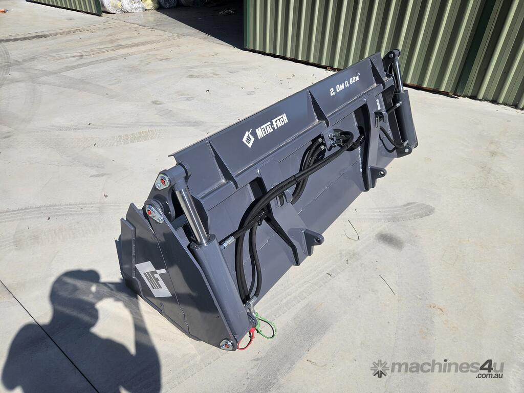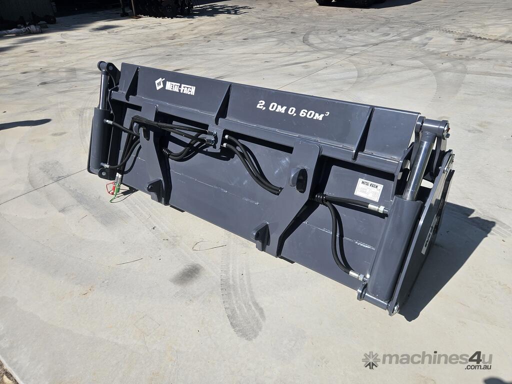The Metal-Fach 4 in 1 Bucket 2m is a versatile attachment for FEL tractors, ideal for agriculture, forestry, and municipal tasks. It efficiently grabs, flattens, and transports loads.