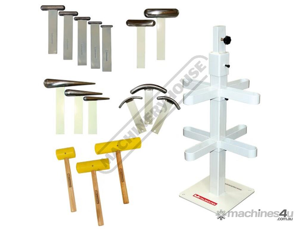 METALMASTER Metal Restoration Mallets, Curved + T-Dollies & Stand Package Deal NM-2K1