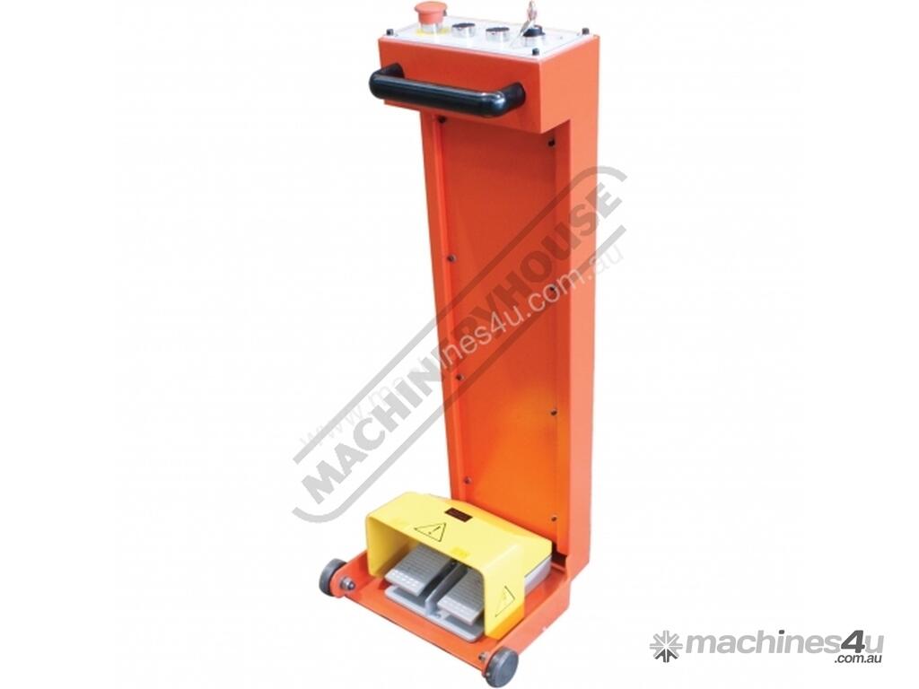 - Emergency stop buttons conveniently located on control panel and foot control