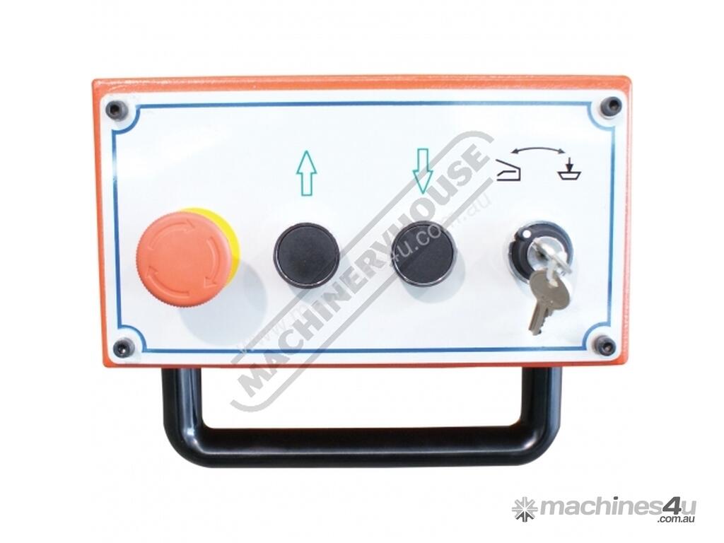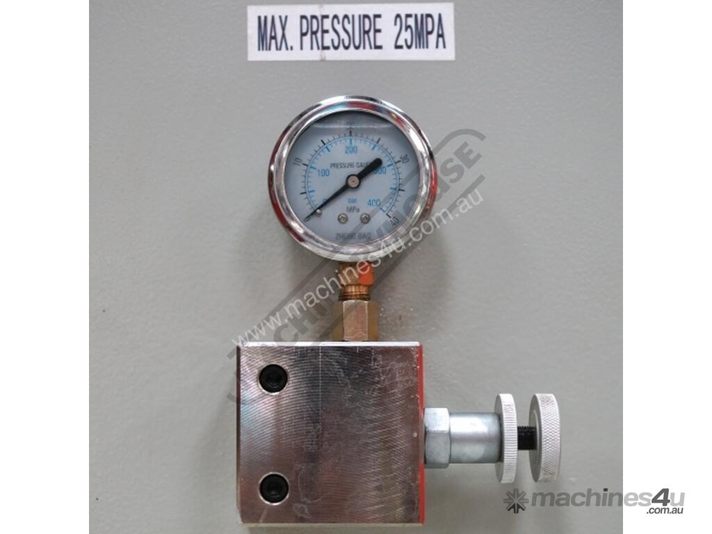 Hydraulic MPA pressure gauge mounted on right side of support frame with quick adjusting pressure control knob allowing operator to accurately set the pressure required for different material thickness incorporating with hydraulic overload protection.