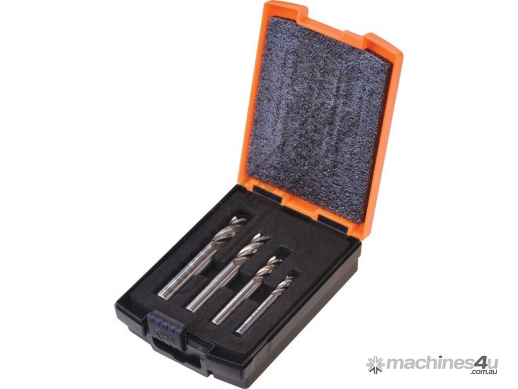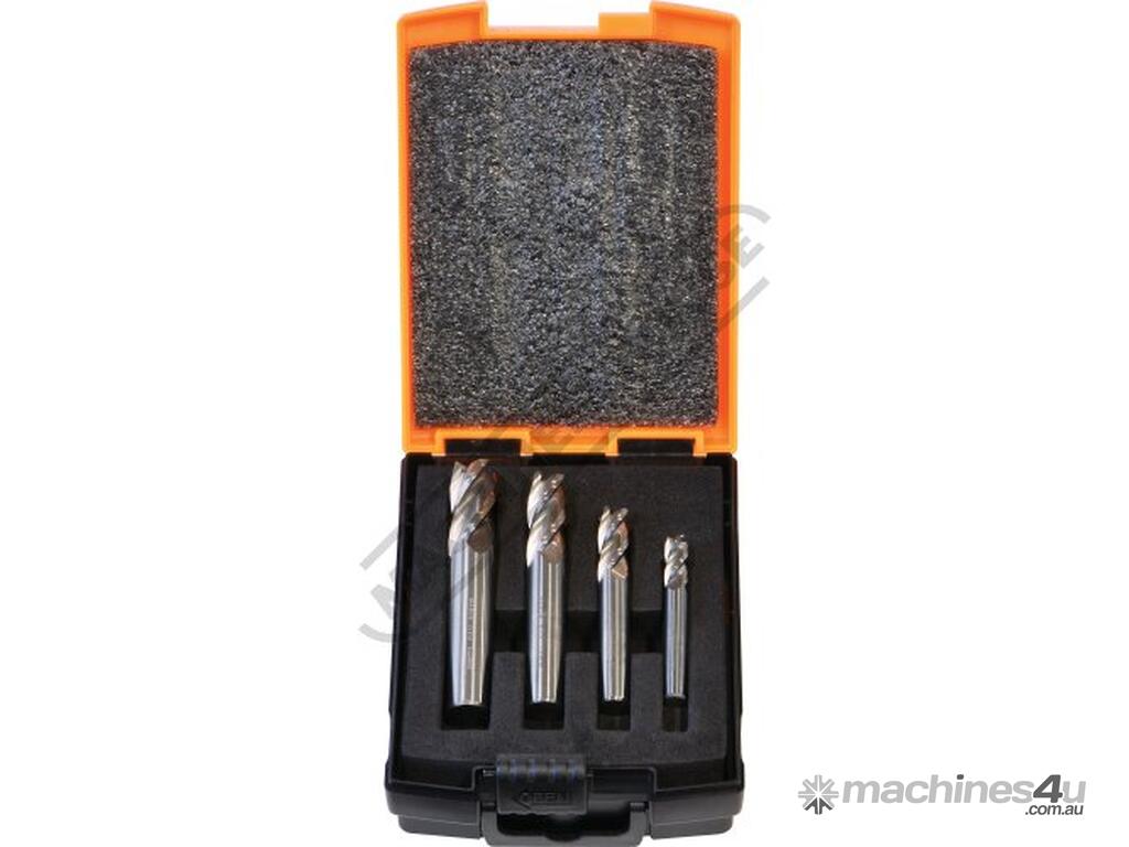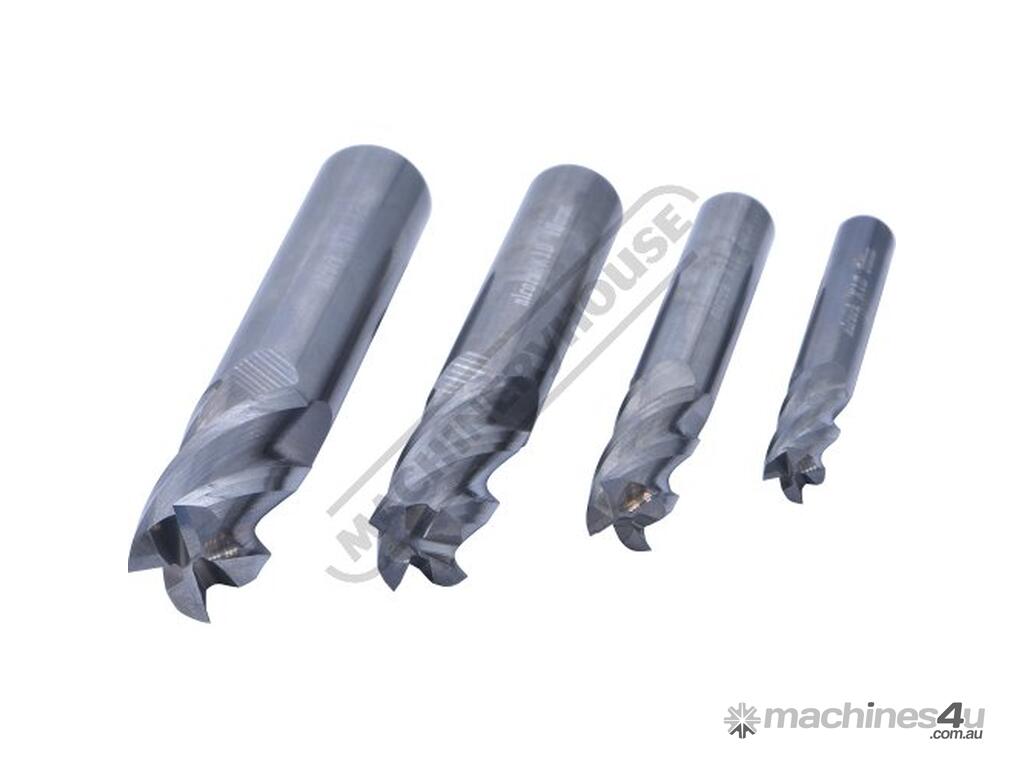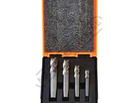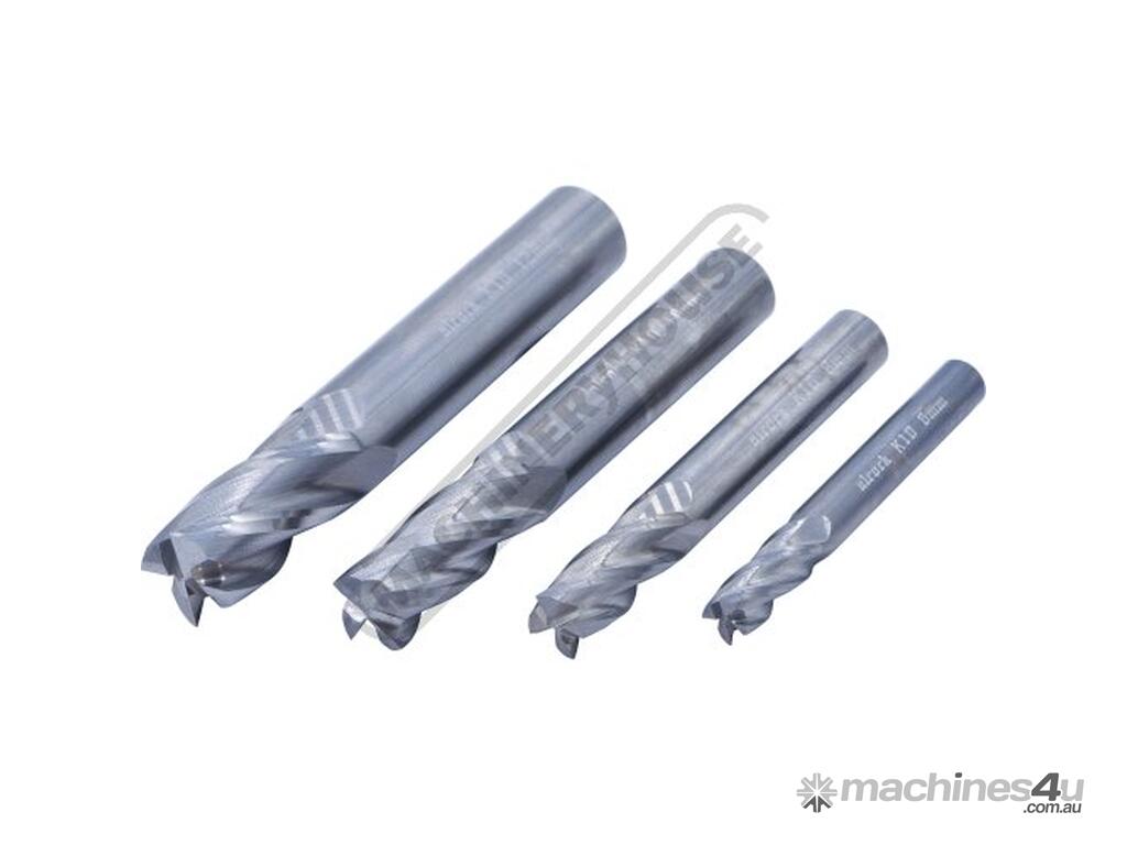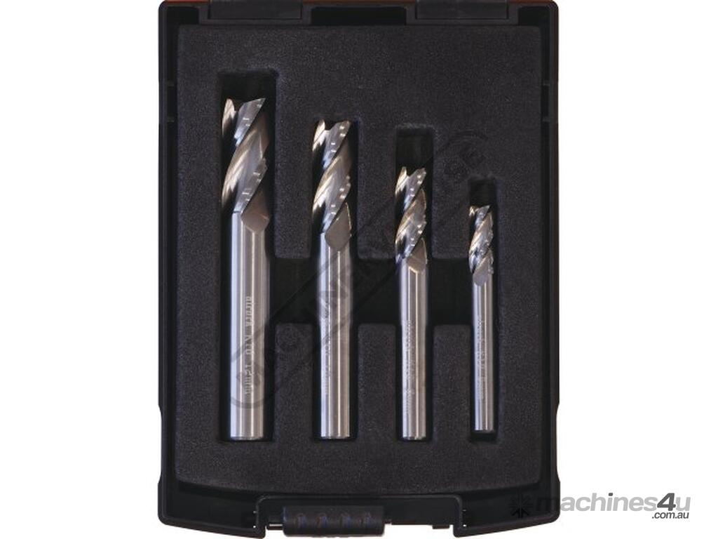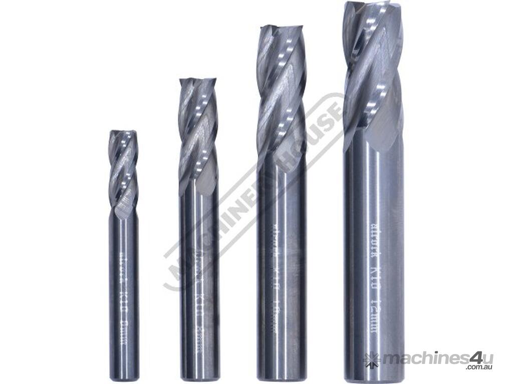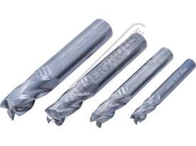 Professional 4-piece metric 4-flute end mill set manufactured from micro-fine solid carbide for strength, accuracy and long tool life. Precision ground cutting edges provide clean, consistent results when milling a range of materials including steel, stainless steel and aluminium.