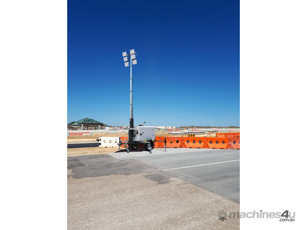 Its compact design features a 9-metre hydraulic mast, 360° manual rotation and a 230L fuel tank offering up to 209 hours of continuous run time. Ideal for remote locations and extended shifts, this lighting tower is trailer-mounted with a mechanical brake for easy transport and rapid deployment.