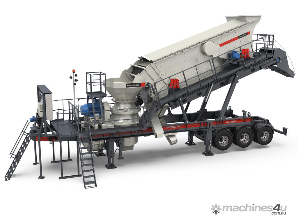 This portable cone crusher has a four desk double-slope screen on the same chassis, ensuring high capacity for various applications in aggregates production. NW220GPS™ ; is built around the Nordberg™ ; GP220™ crushing unit with 220kW (300hp) crushing power and capacity up to 250tph.