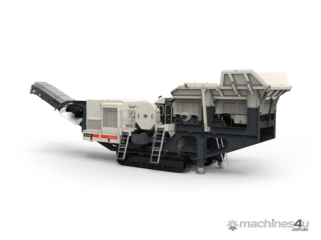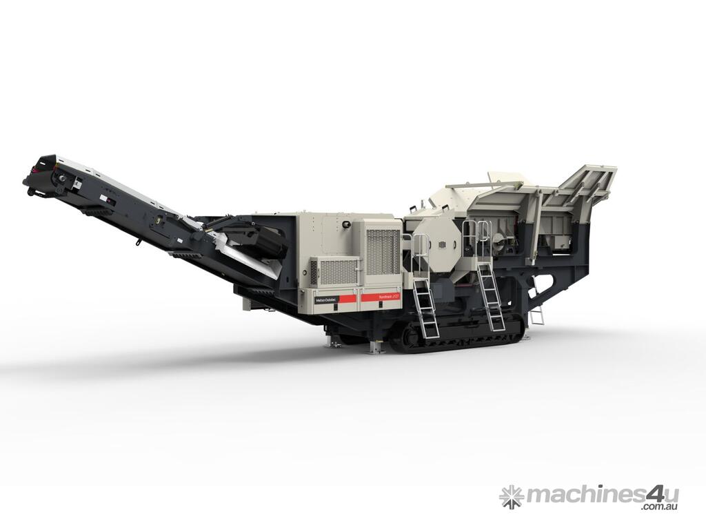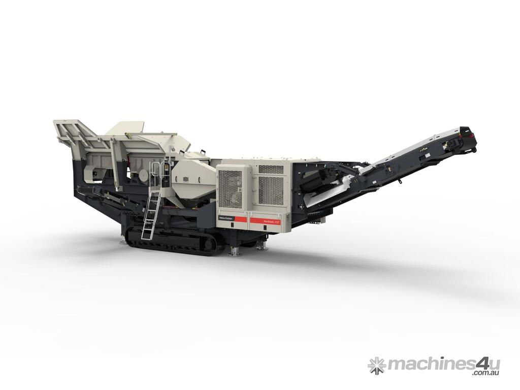 The Nordtrack™ J127 mobile jaw crusher is designed to deliver high productivity quickly. The wide jaw crusher and two-stage feeder enable high throughput in both quarry and recycling operations. This track-mounted, self-propelled, diesel engine-powered primary crushing unit includes the jaw crusher and standard components such as the frame, tracks, hydraulics, electrification, control units, belt guards, service platforms, rails, and ladders.