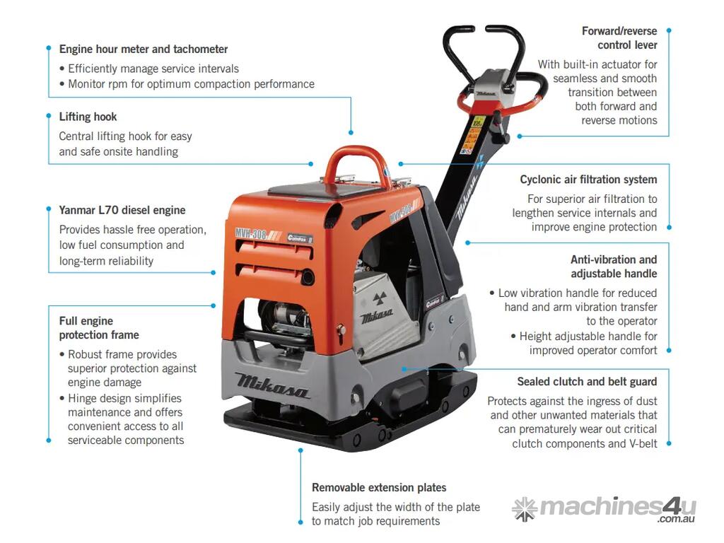 The Mikasa MVH-308DSY Reversible Plate Compactor delivers dependable compaction for sand, gravel, and cohesive soils. Crafted for demanding civil and commercial construction sites, it combines strong performance with excellent operator comfort and safety.