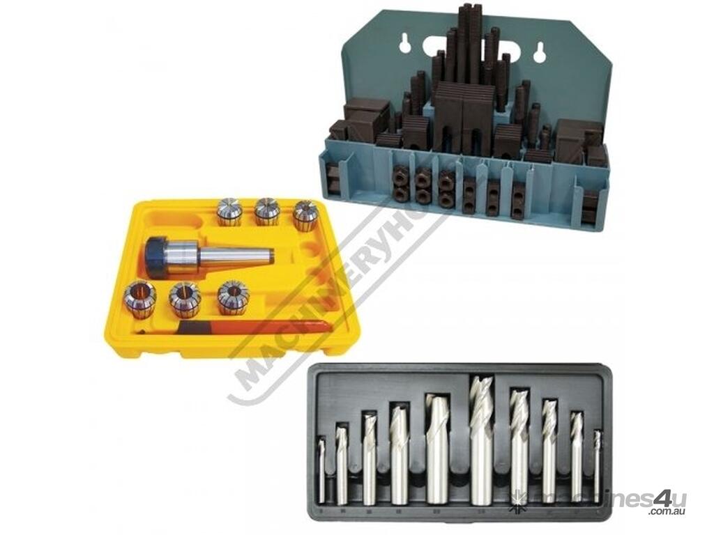HAFCO Mill-Drill Accessory Package Deal - Metric Cutters 3MT Includes 3MT Collet Chuck Set, Clamp Kit, End Mill & Slot Drill Set