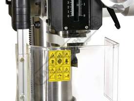 The belt driven head provides a useful range of 12 speeds, 100-2080rpm and is quiet in operation, the head can be re-positioned on the column with the aid of a handle driven rack and pinion drive.