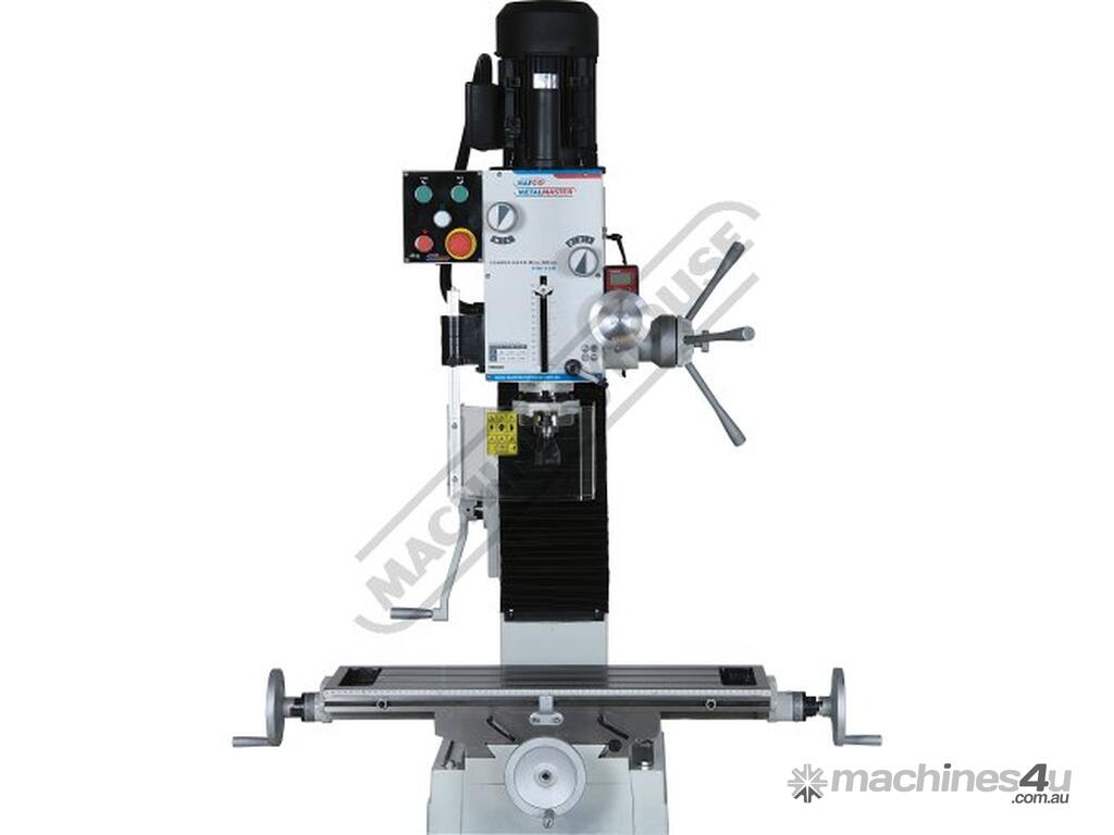 HAFCO-METALMASTER Mill Drill - Geared & Tilting Head HM-46B Table Travel: (X) - 485mm (Y) - 175mm (Z) - 430mm Includes Dovetail Column