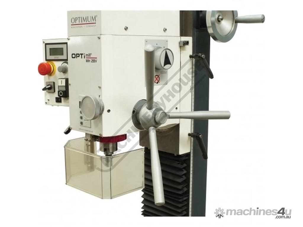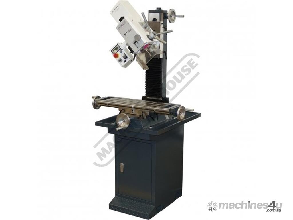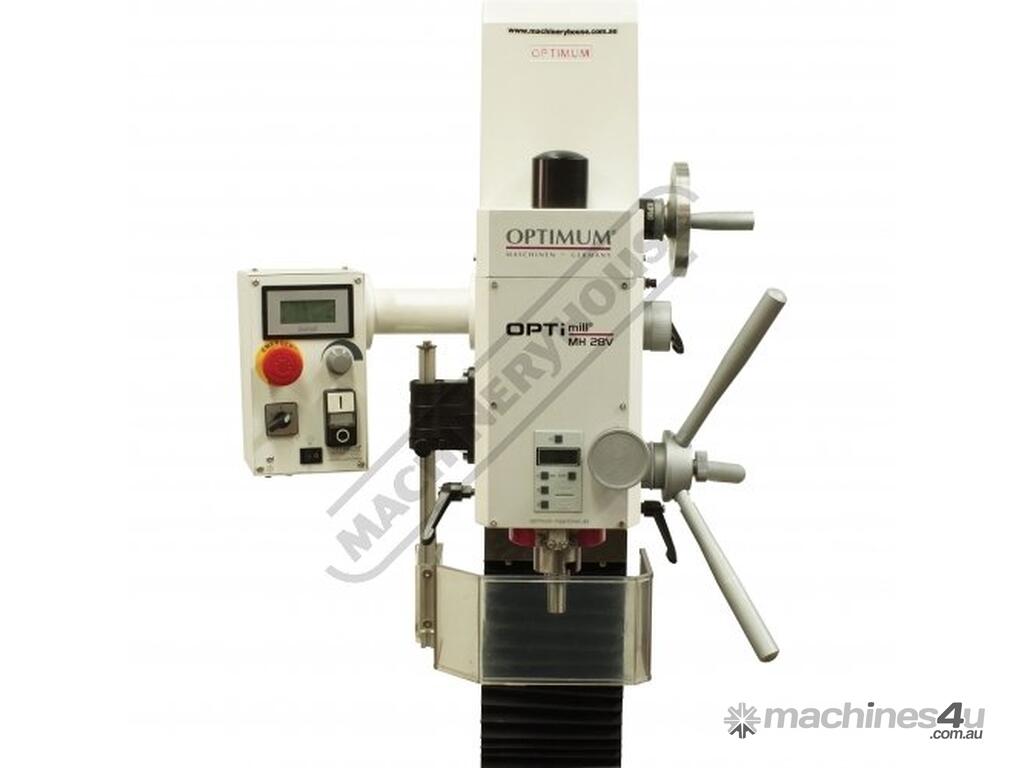 OPTIMUM Mill Drill - Geared & Tilting Head MH-28V Table Travel: (X) - 430mm (Y) - 220mm (Z) - 355mm Electronic Variable Speeds & Dovetail Column
