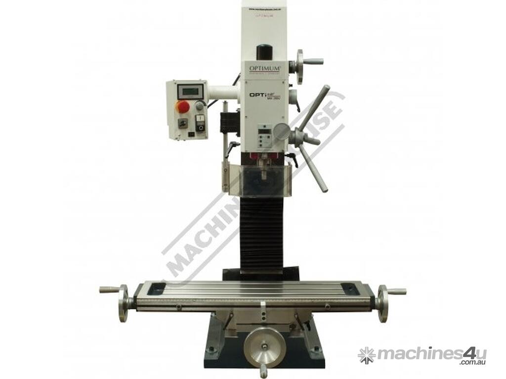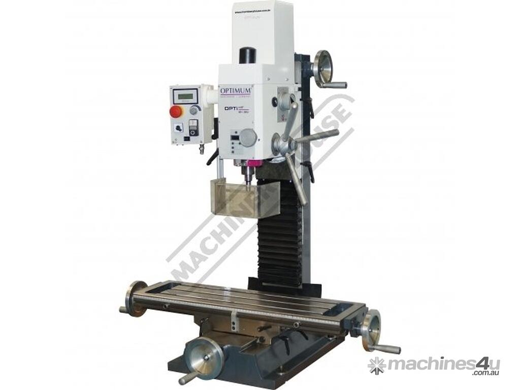 OPTIMUM Mill Drill - Geared & Tilting Head MH-28V Table Travel: (X) - 430mm (Y) - 220mm (Z) - 355mm Electronic Variable Speeds & Dovetail Column