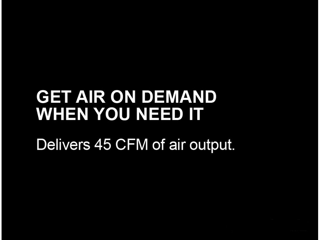 - Integrated Air Compressor: Rotary screw compressor delivering 60 CFM at 100 PSI