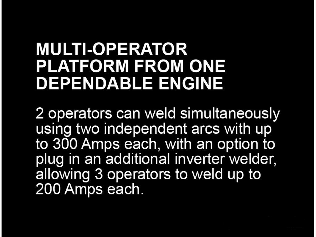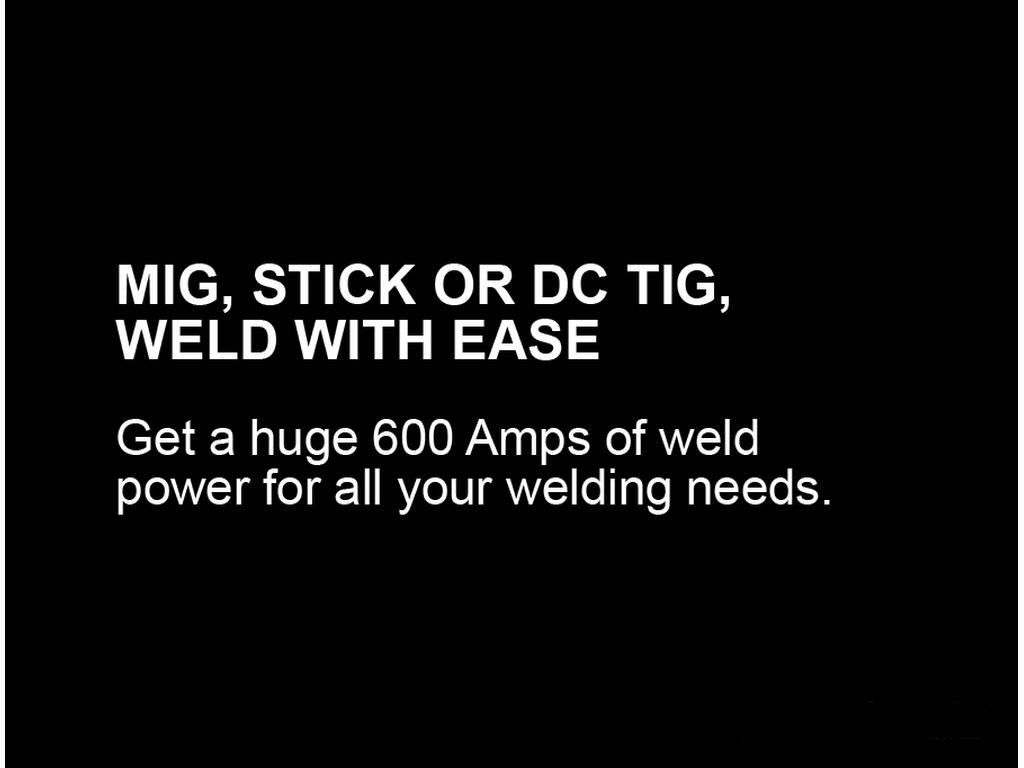 - Welding Output: 600A DC at 100 percent duty cycle with dual-operator capability