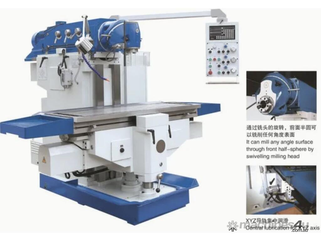 F, It can mill any angle surface through front half-sphere by swivelling milling head.