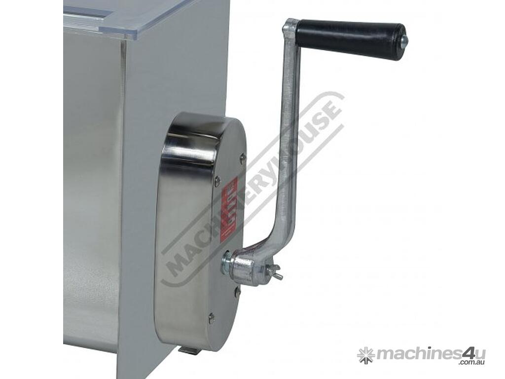 The MMM-20 Carnivore Mince Mixer is an essential equipment to own when mixing in herbs & spices to your mince meat in preparation for sausage making or even just producing meat balls. The drive crank handle is geared to 3:1 ratio and creates light work for the operator, by decreasing the effort required to rotate when loaded up to full capacity.